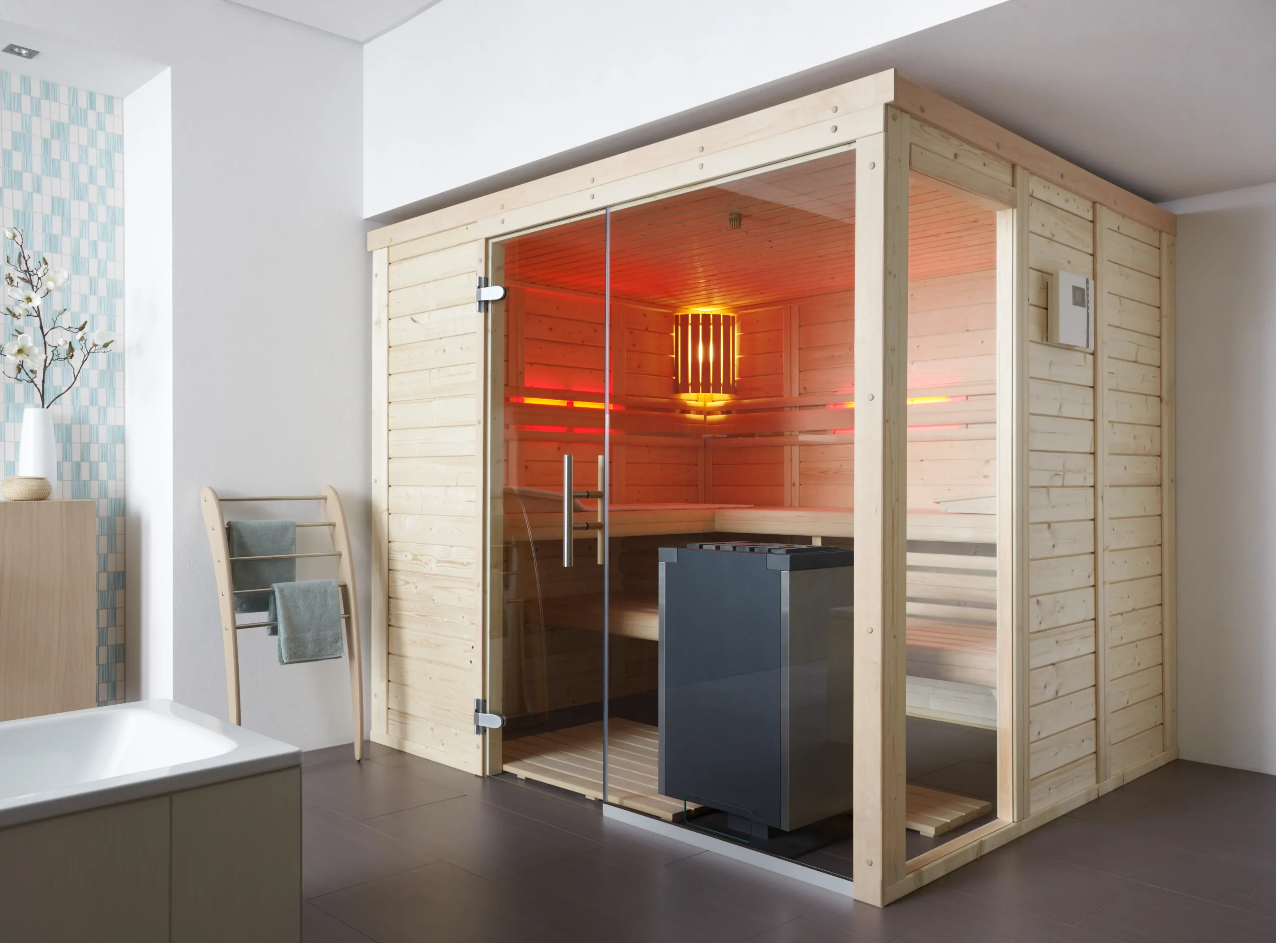 The BLOCKSTAR indoor sauna is a robust and stylish wellness solution crafted from solid timber. Its clean design and natural wood finish create a warm, calming atmosphere, while the breathable construction ensures a balanced sauna climate. With ergonomic bench seating and thoughtful interior details, Blockstar offers a reliable and elegant retreat for everyday relaxation.