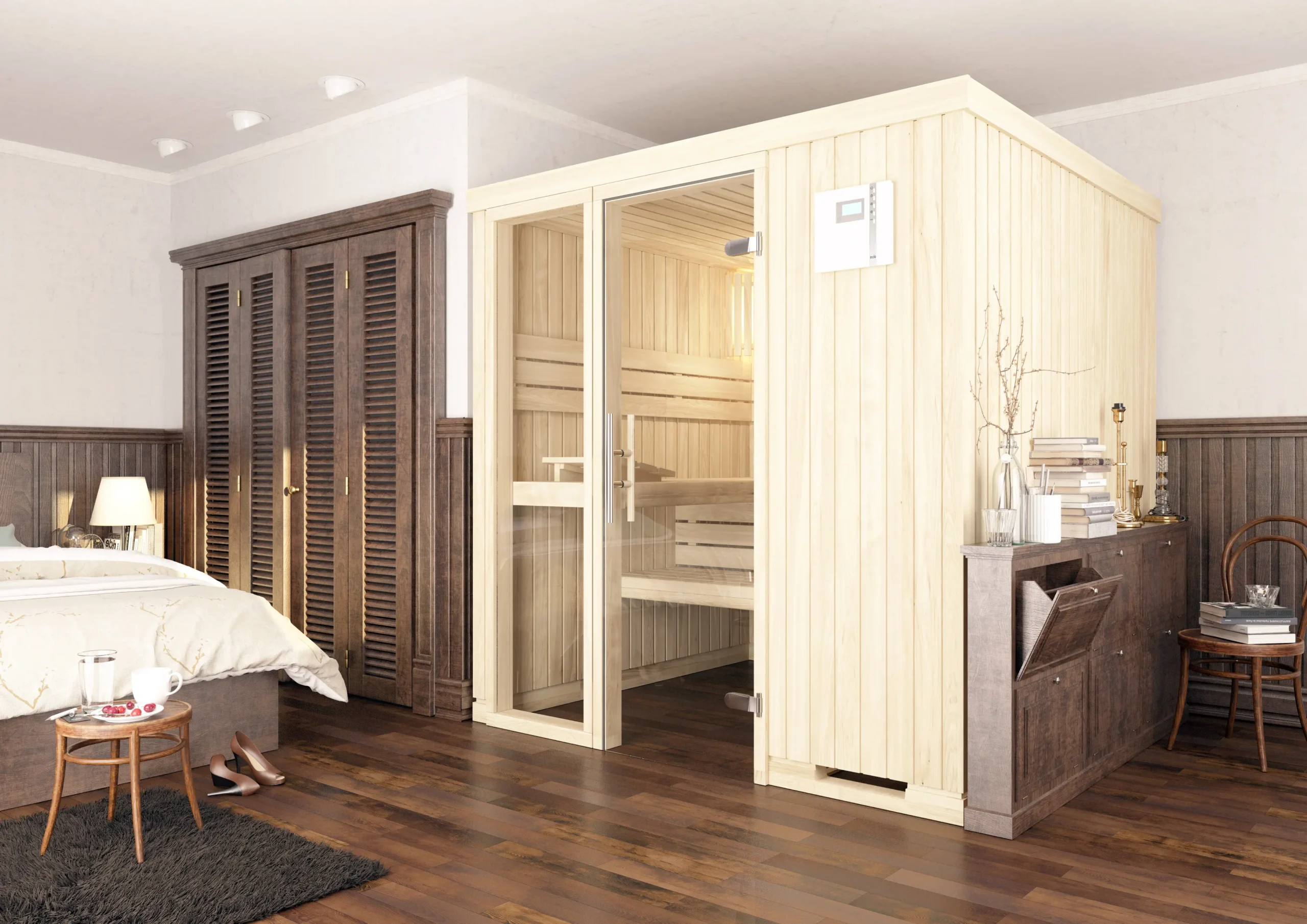 The CLASSIC indoor sauna is a versatile wellness solution available in a wide range of size and layout options. Its natural wood construction and customizable interior finishes create a warm, inviting atmosphere, while the ergonomic bench design ensures comfort during every session. With options for different wood profiles and accessories, CLASSIC adapts easily to both traditional and modern interiors, making it a reliable choice for private homes or wellness suites.