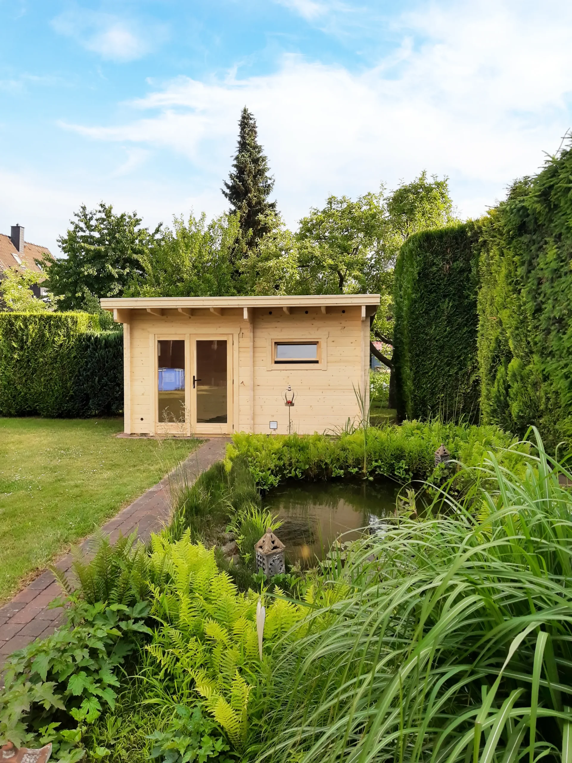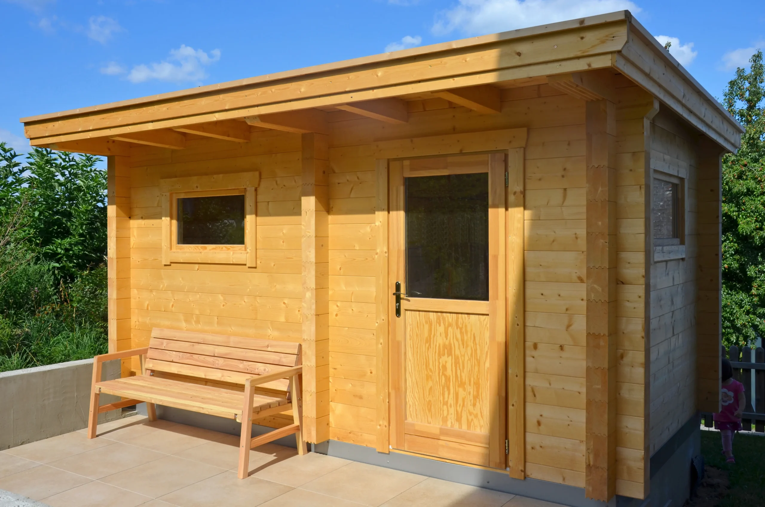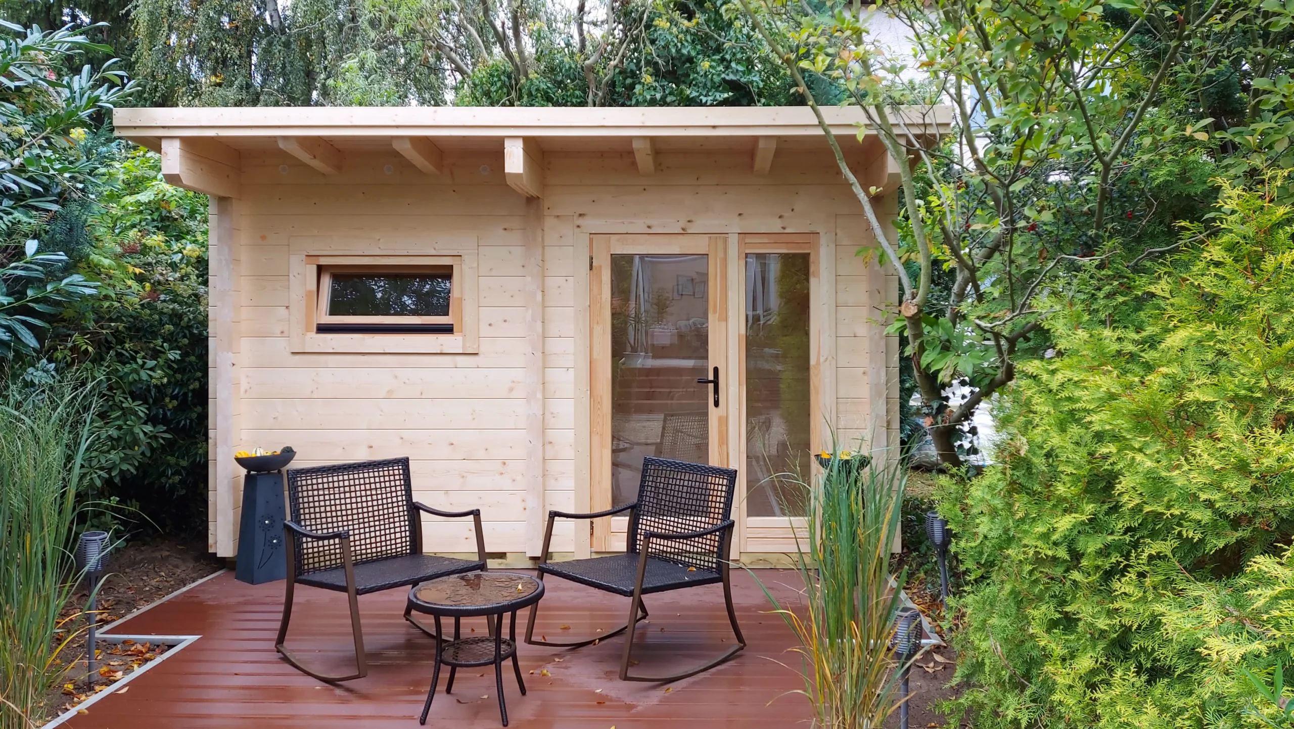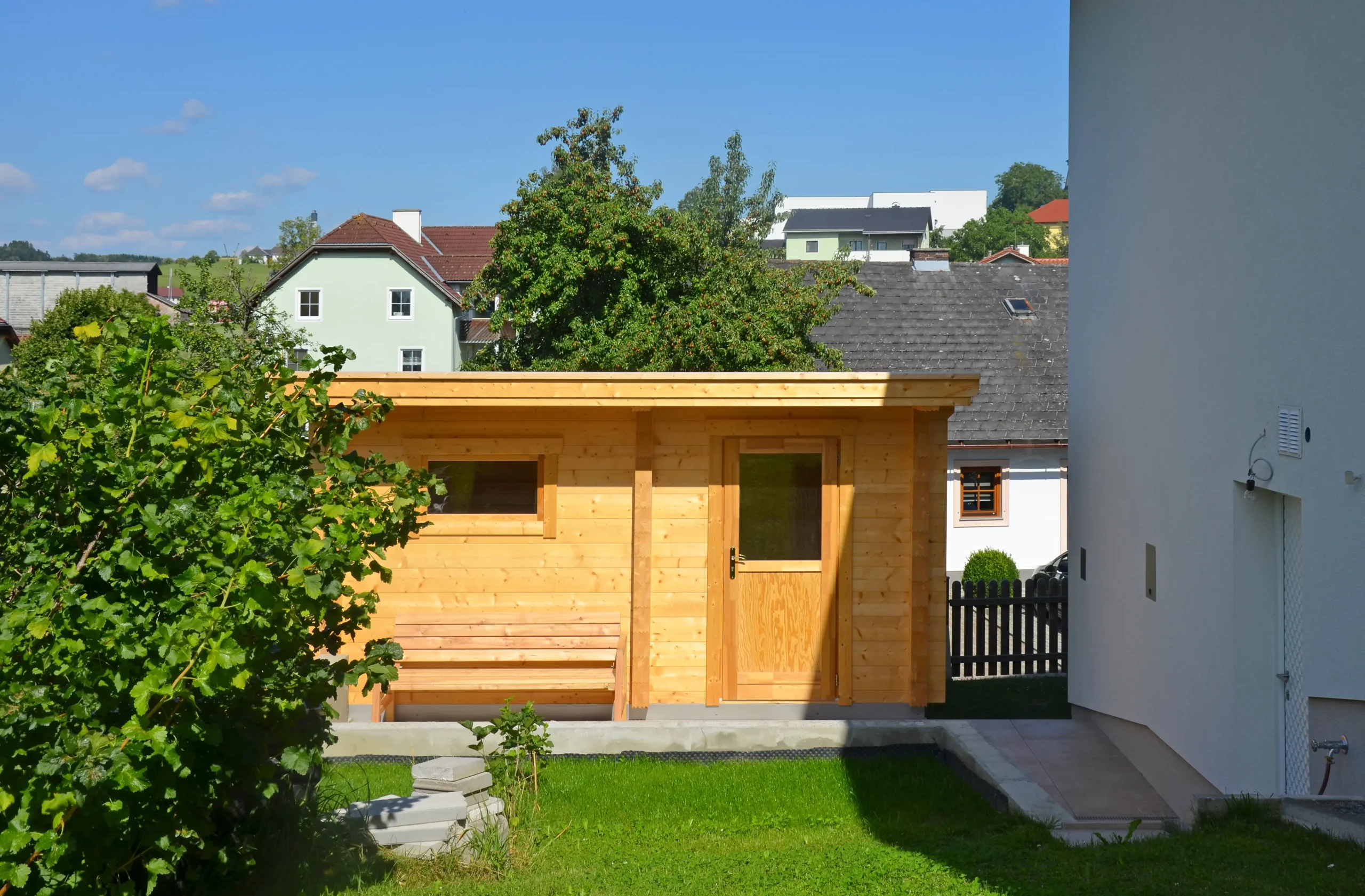 The EIBSEE is an expanded version of the BODENSEE 2, offering additional space and functionality. Its layout includes a separate antechamber for changing or storage, while the sauna room features softwood finishes and full insulation for a cozy, private retreat. With a flat, single-pitch roof and horizontal cladding, EIBSEE is ideal for residential wellness zones or hospitality settings seeking comfort and versatility.