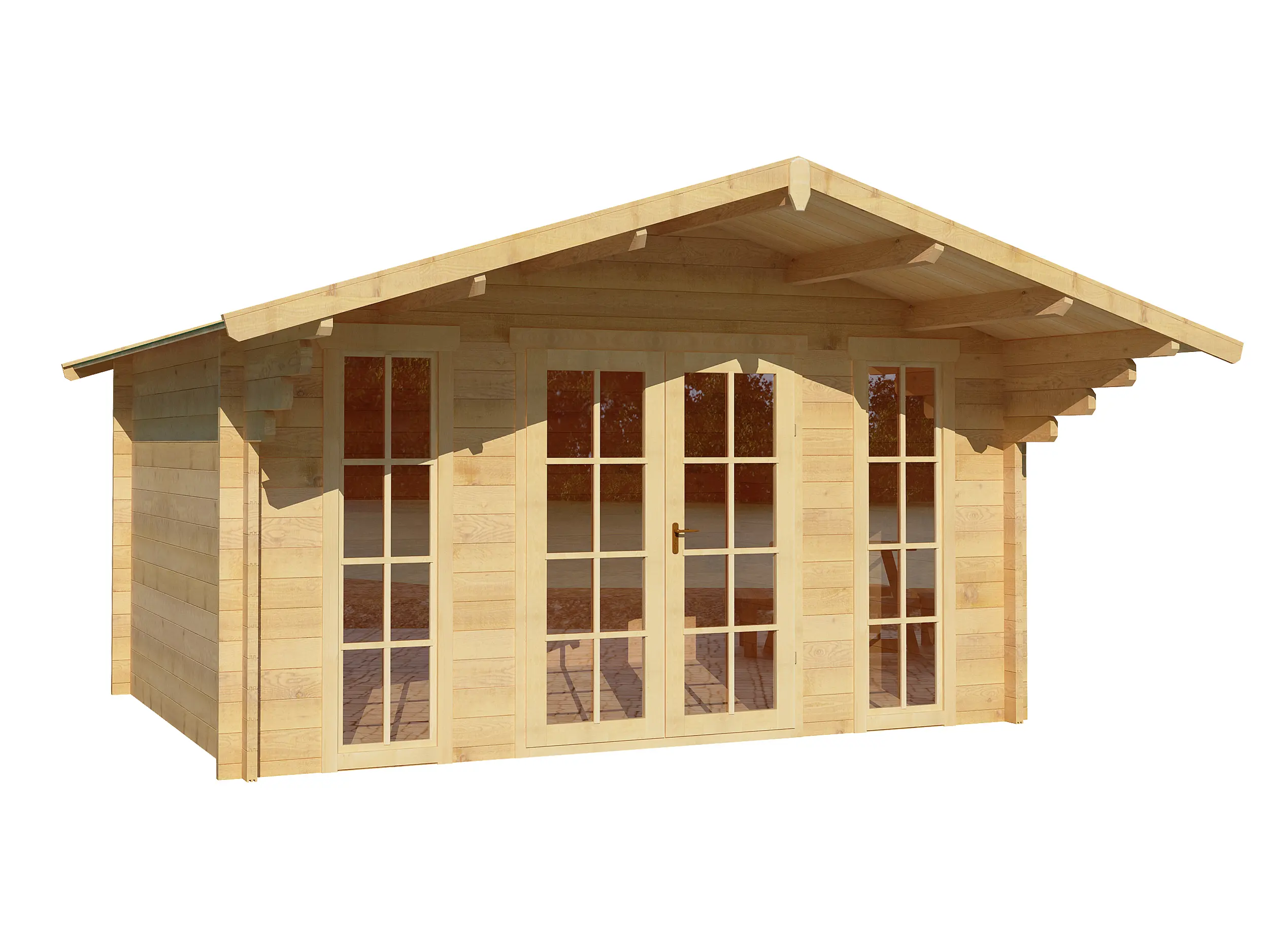 The ENZIAN S10 is a premium timber garden cabin featuring a classic gable roof and full-length glass windows and doors. Its bright, open interior is ideal for use as a garden lounge, creative workspace, or hobby room. With its elegant design and panoramic garden views, the S10 is a stylish and functional addition to residential landscapes or boutique hospitality settings.