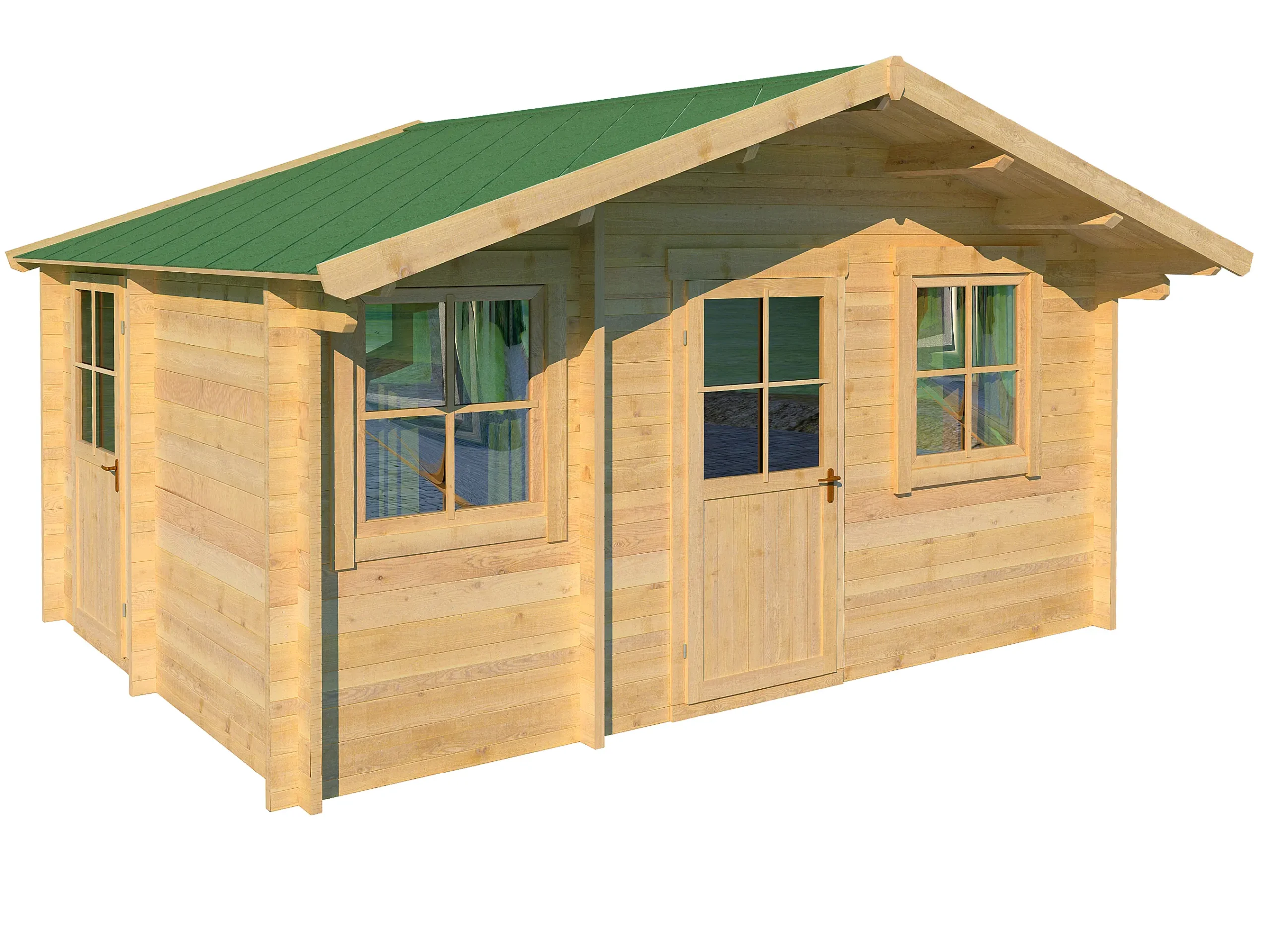 The ENZIAN S13 is a first-class log garden house featuring a spacious annex and traditional gable roof. Designed for both storage and leisure, it offers ample room for tools, furniture, or a cozy retreat. Its robust timber construction and elegant design make it a standout choice for landscaped gardens, resort areas, or commercial outdoor settings.