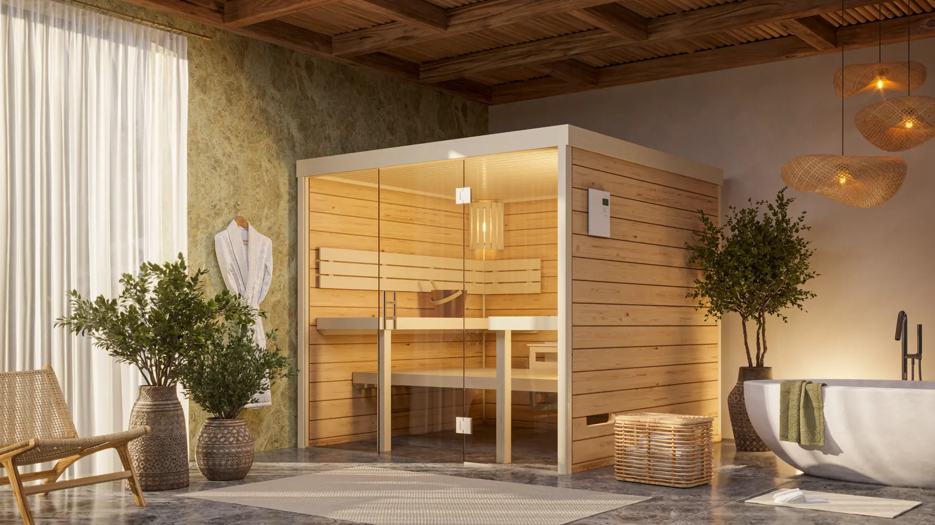 The ESPO-GSTAR is the flagship of the ESPO series, combining a panoramic glass front with refined interior detailing. Built with a robust timber frame and breathable wall system, it delivers a consistent and soothing sauna climate. The GSTAR edition includes upgraded bench finishes, ambient lighting options, and enhanced ergonomic features-perfect for luxury wellness spaces, boutique spas, or high-end residential installations.