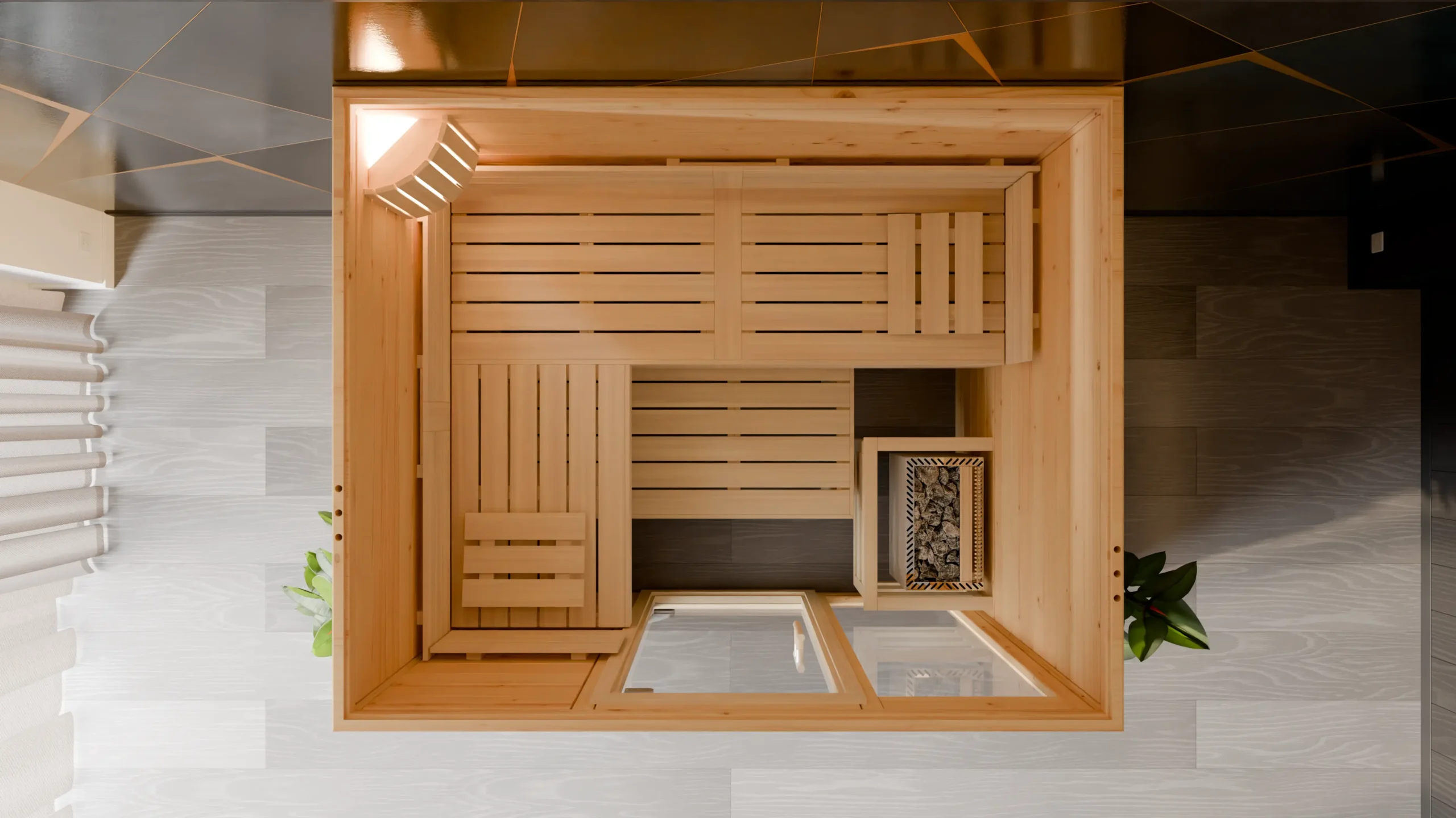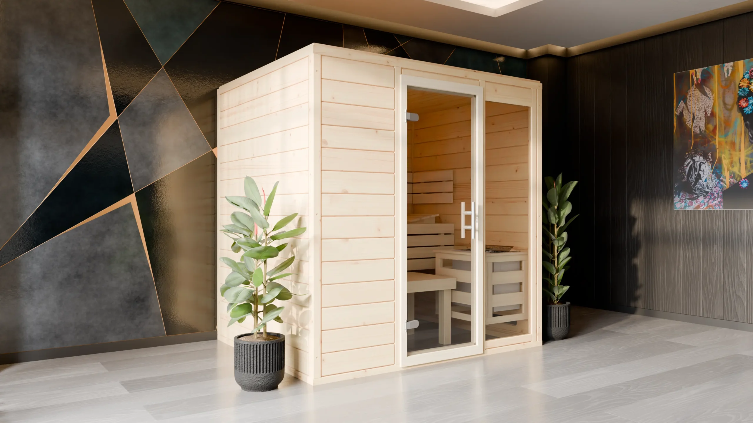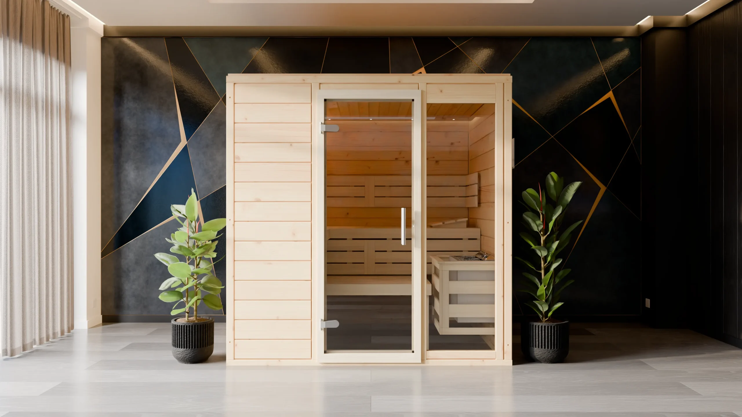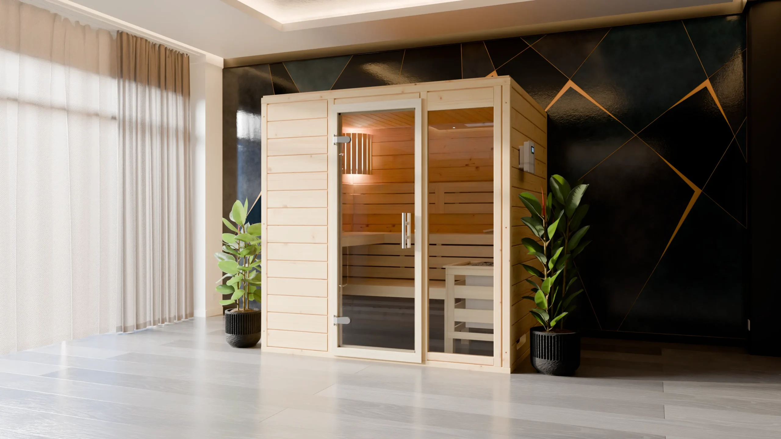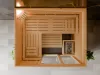 ESPO This classic rectangular indoor sauna blends traditional design with modern comfort. Its breathable timber construction ensures a balanced sauna climate, while the ergonomic three-bench layout offers a relaxing experience for multiple users. With customizable dimensions and optional accessories, it’s ideal for wellness enthusiasts looking to create a personalized spa experience at home.