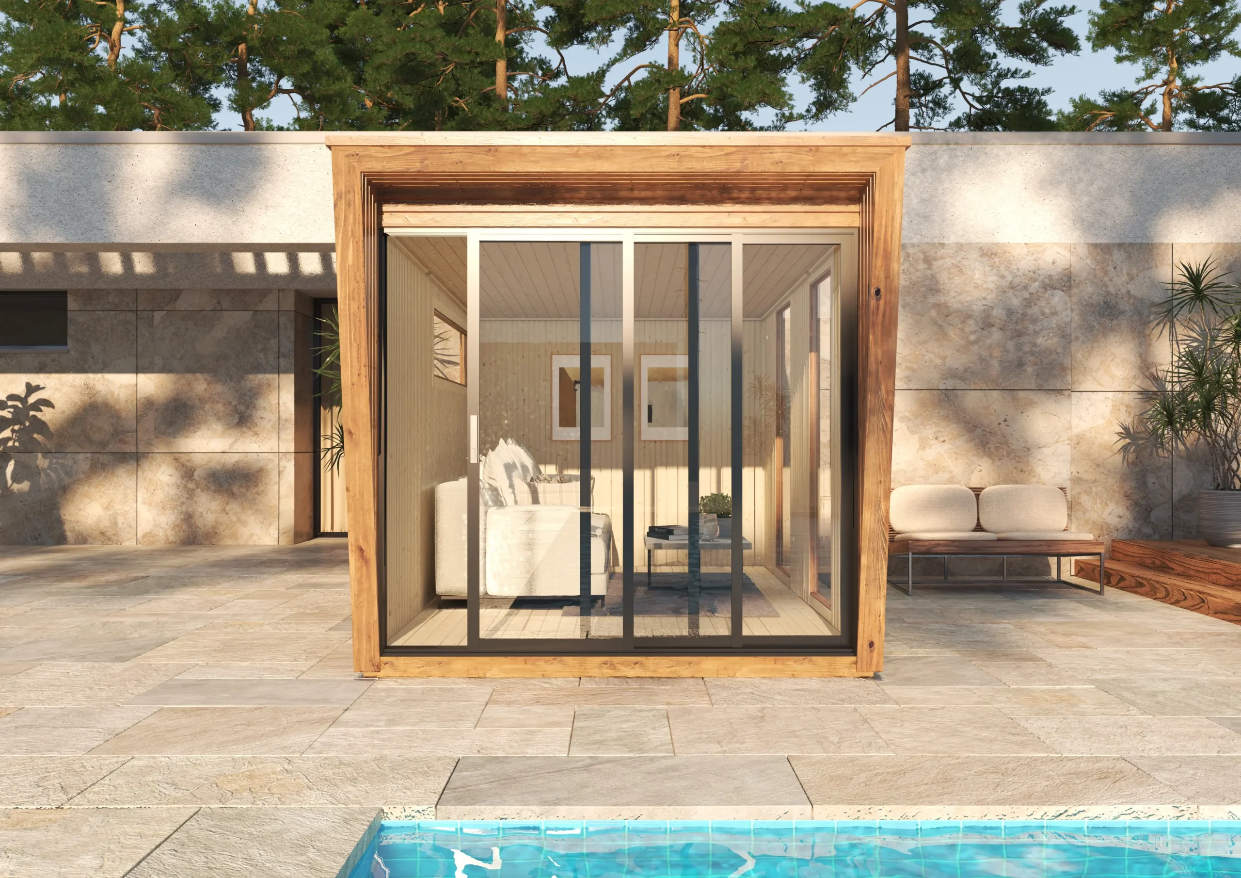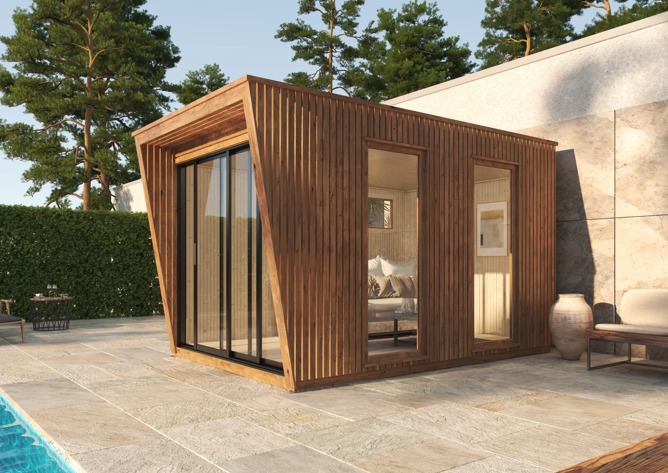 The LauraLine® GIKA is a premium outdoor garden house that blends luxury with modern design. Featuring vertical timber cladding, floor-to-ceiling windows, and sliding glass doors, it creates a light-filled, airy atmosphere. Ideal as a garden lounge, home office, or stylish reception area, GIKA is also well-suited for commercial use in resorts, wellness centers, or boutique retail spaces. Its sleek architecture and versatile layout make it a standout in any contemporary outdoor setting.
