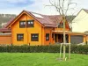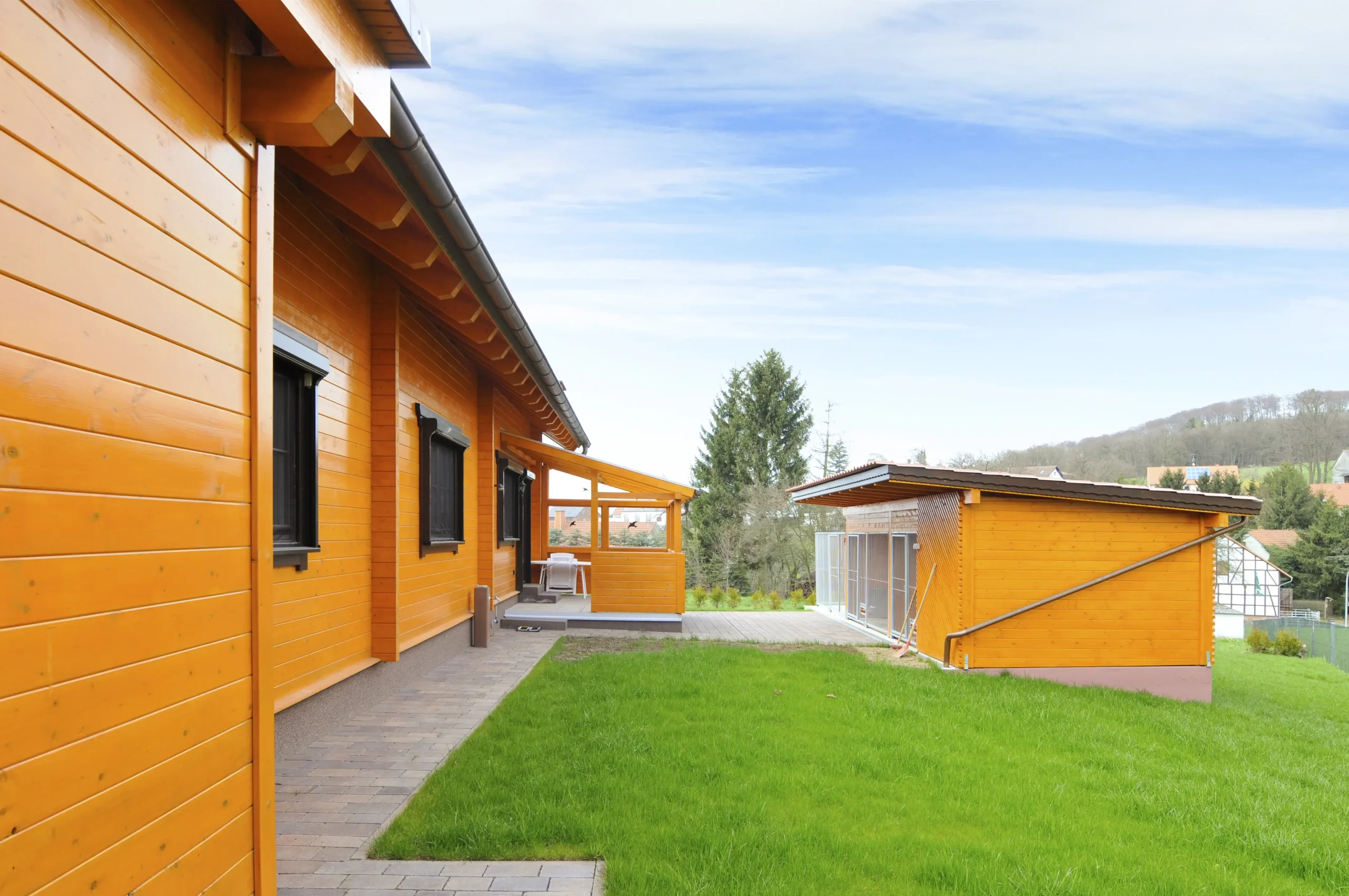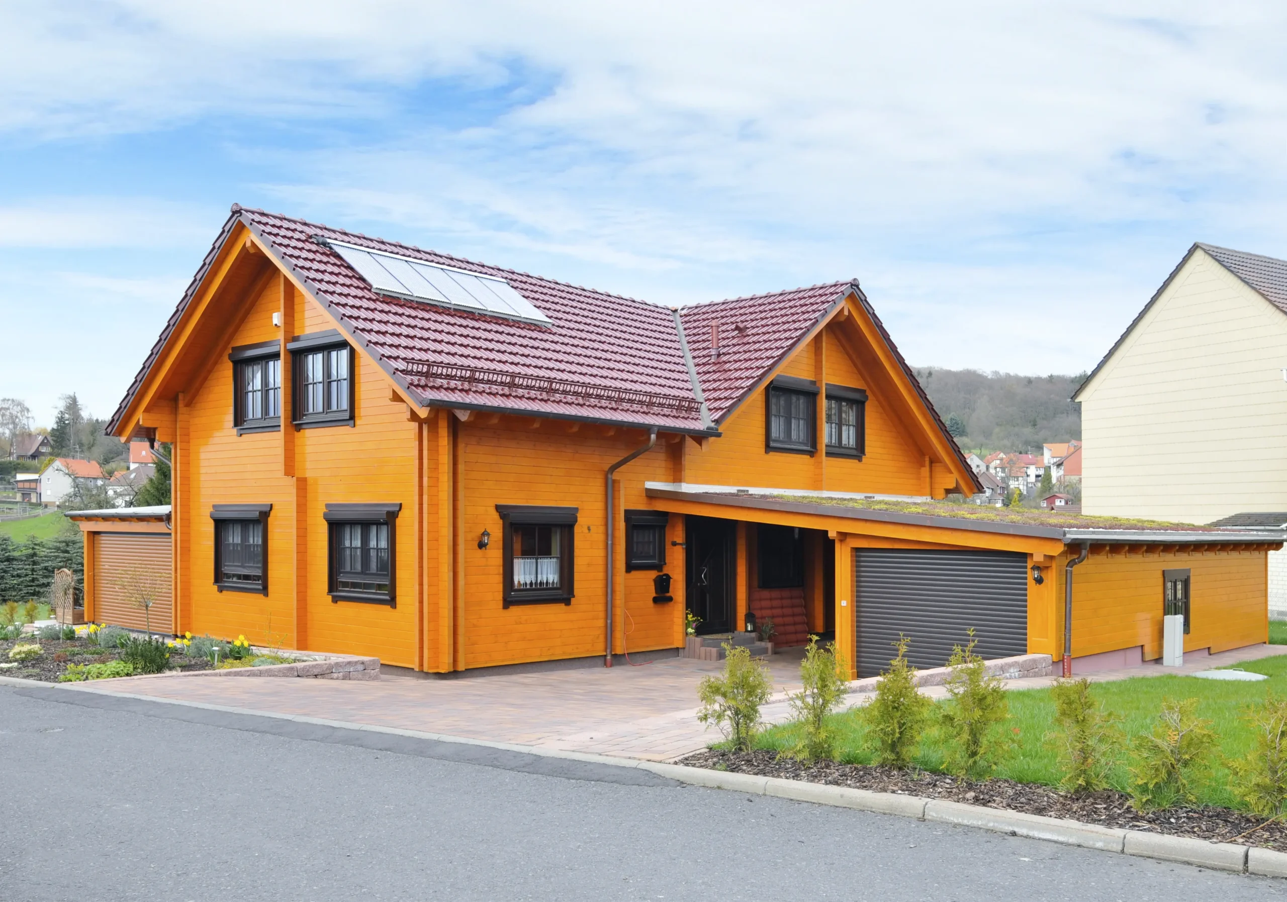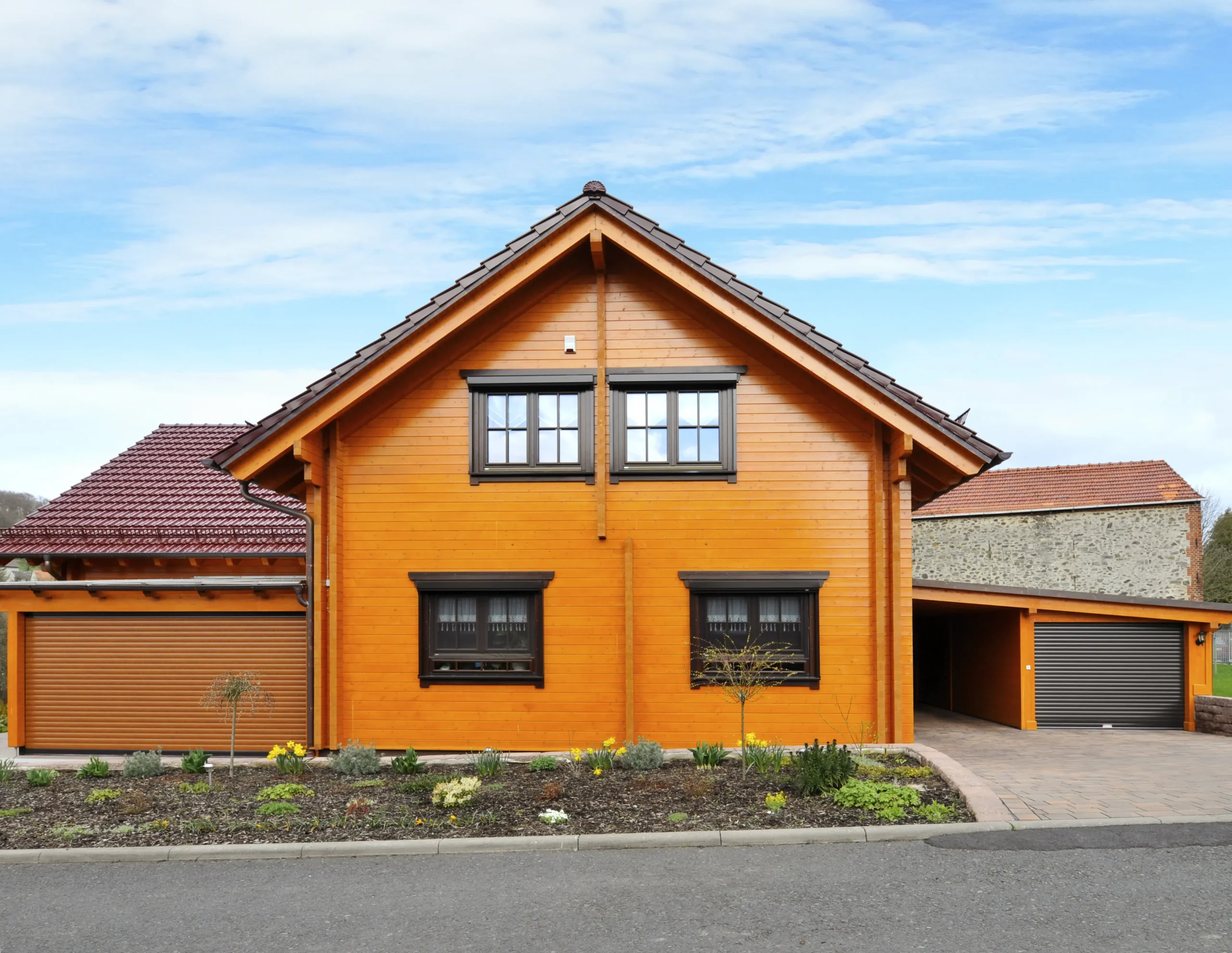The HOMBERG is a luxury timber blockhouse designed for spacious, high-comfort living. Its layout includes four large bedrooms, three bathrooms, and a dedicated sauna room for wellness and relaxation. The open-plan living area-combining dining, kitchen, and hall-flows seamlessly into a large outdoor terrace, perfect for entertaining or enjoying nature. Built with double-walled insulated timber, HOMBERG ensures year-round energy efficiency and durability. With its elegant design and premium features, it’s an ideal choice for upscale residential developments or exclusive retreats.