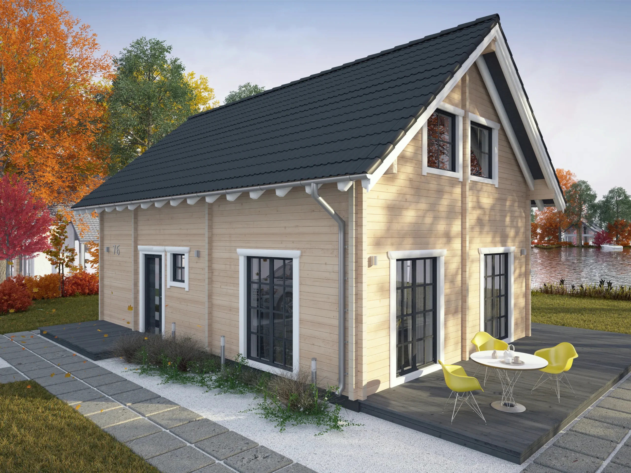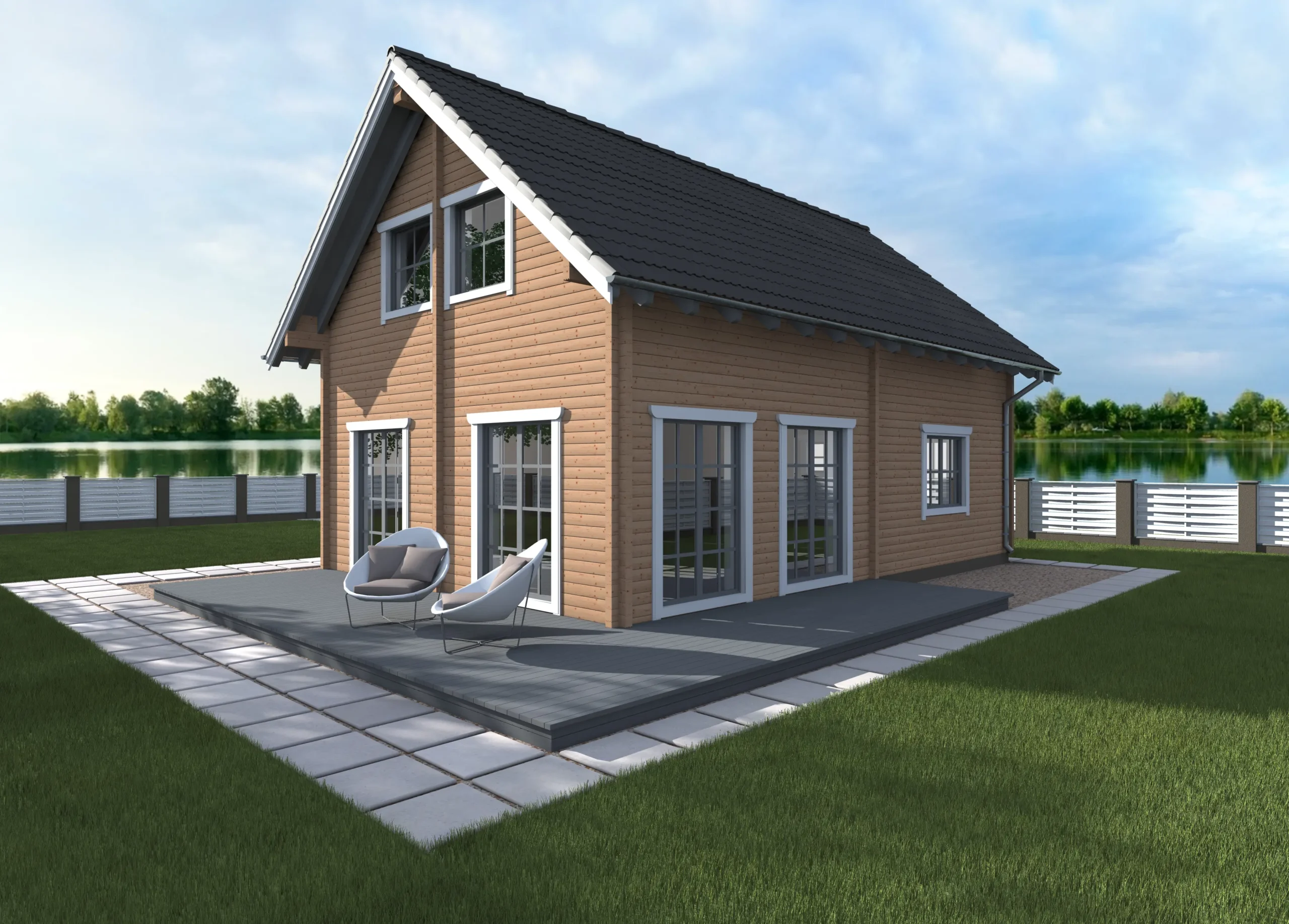 The JANUS is a spacious timber blockhouse designed for modern family living. Its layout includes three bedrooms, two bathrooms, and a large open-plan living area that connects seamlessly to the outdoors. A rear terrace extends the living space into the garden, offering an open-air area for dining or relaxation. With its traditional gabled roof and natural timber construction, JANUS delivers a timeless aesthetic paired with everyday functionality-ideal for residential developments or countryside retreats.