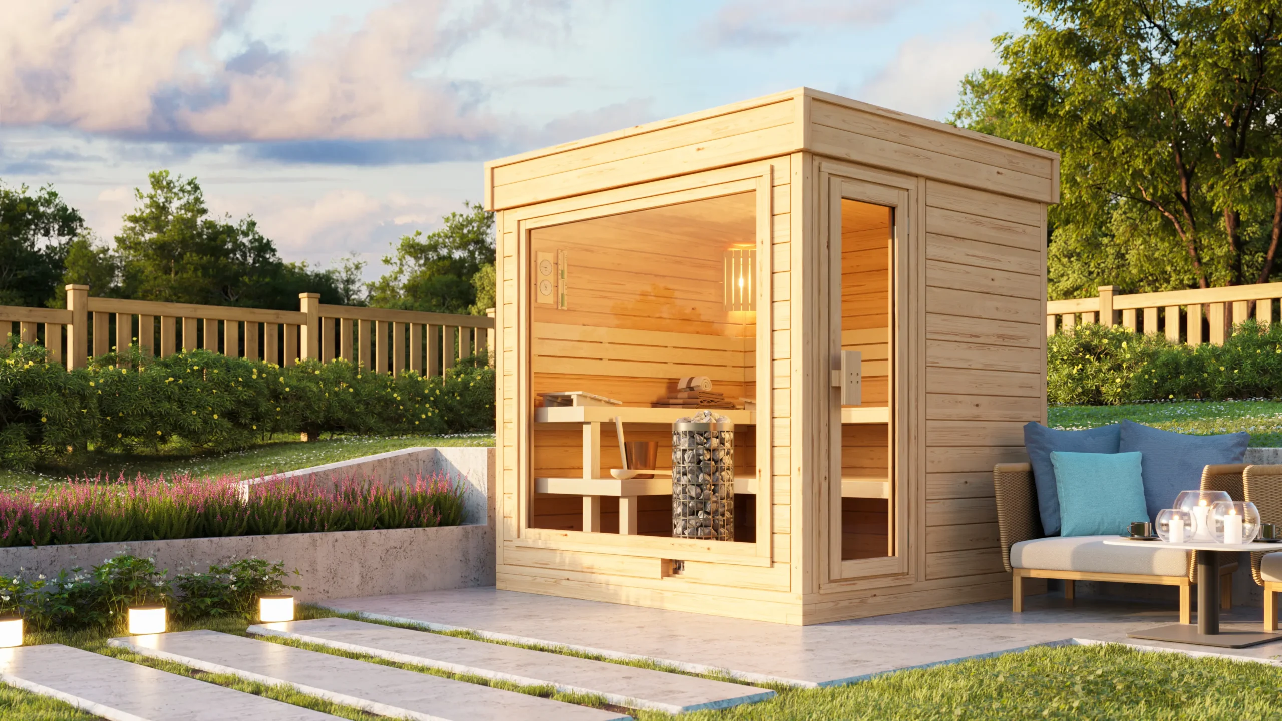 The JOY ONE is a compact garden sauna with a clean, modern silhouette and efficient layout. Its flat roof and horizontal timber cladding for a modern, linear look, while the insulated interior ensures a cozy, relaxing experience. Ideal for private wellness zones or small outdoor retreats, JOY ONE offers ergonomic seating, durable construction, and a minimalist design that fits seamlessly into contemporary garden settings.