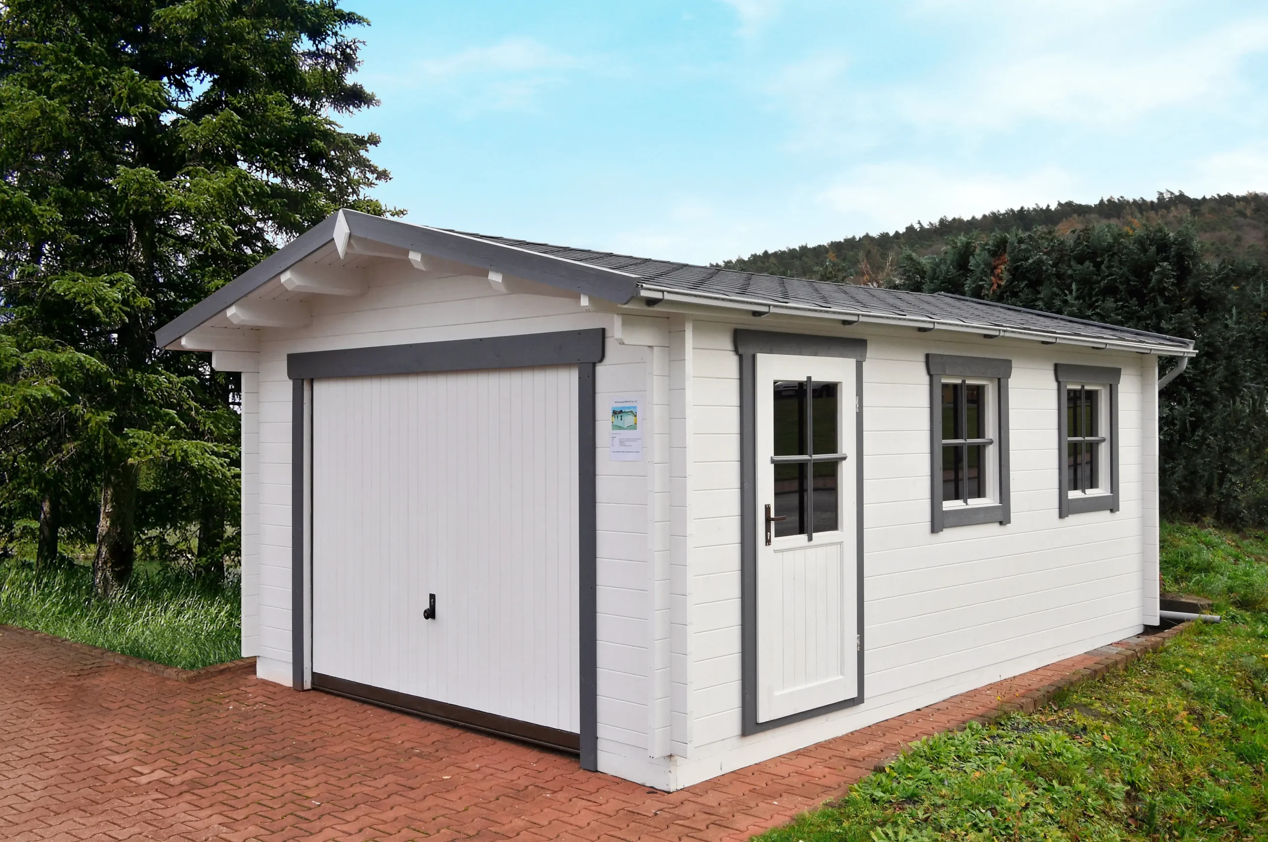 The KROKUS timber garage is a robust single-unit structure designed for secure vehicle storage. Built with high-quality wood and a traditional gabled roof, it offers long-lasting protection against the elements. Its straightforward design suits a wide range of property types, while optional features like windows, side access, or tool storage enhance usability. A dependable choice for homeowners or facility managers seeking practical, enclosed parking.