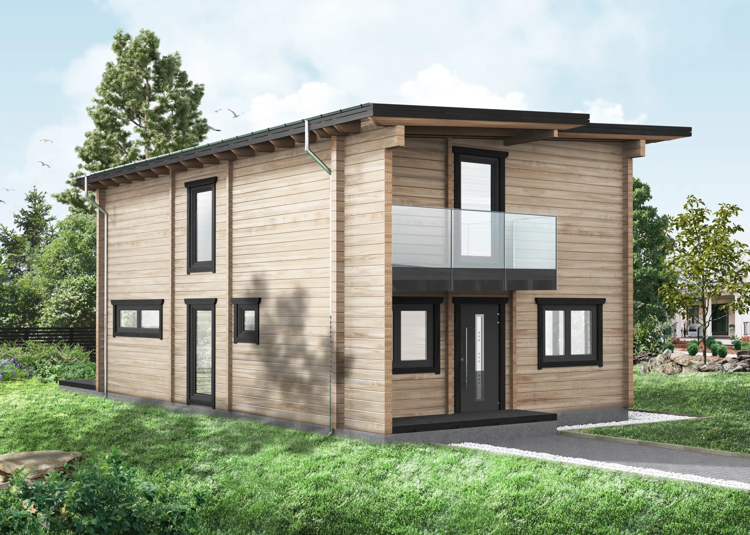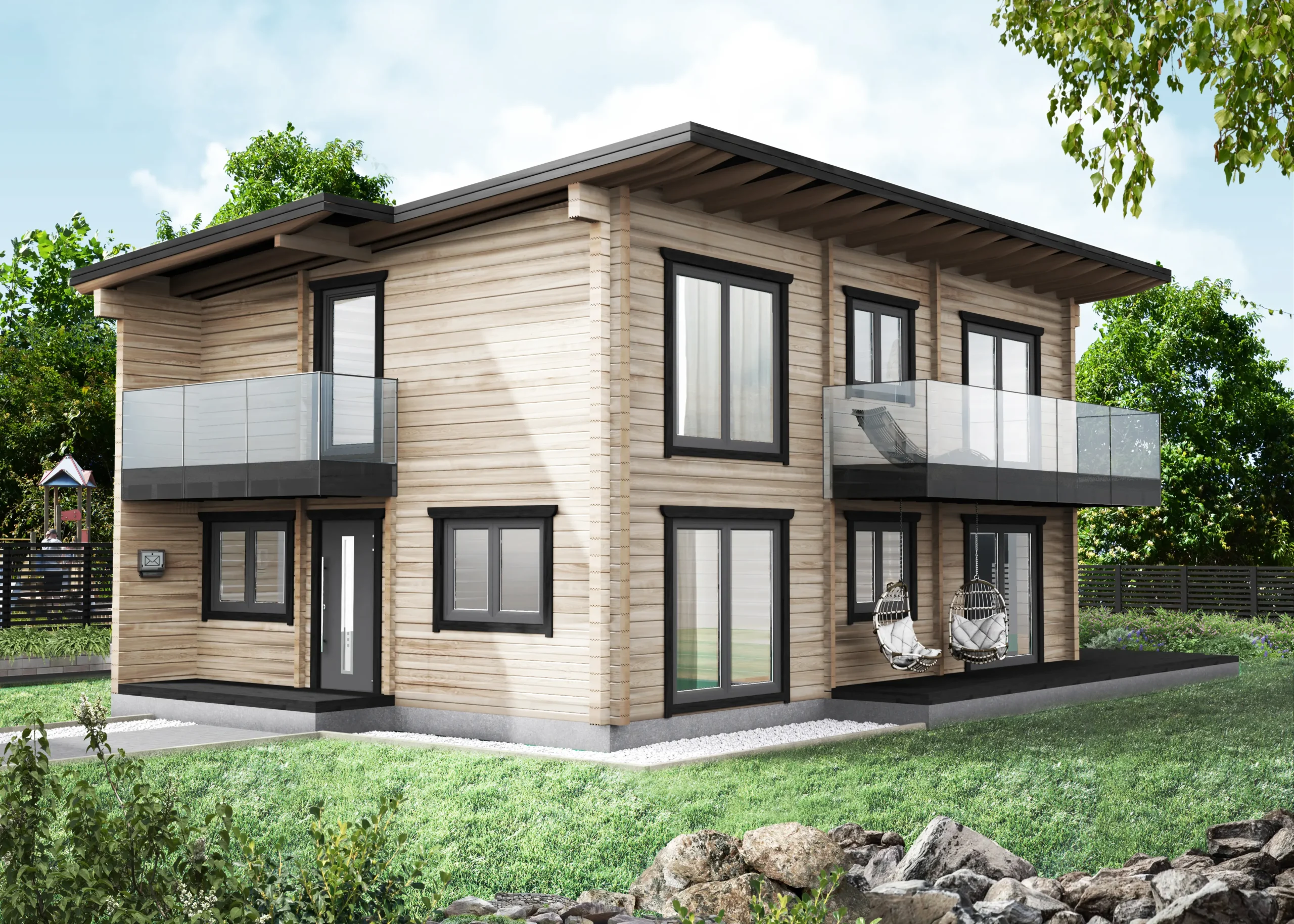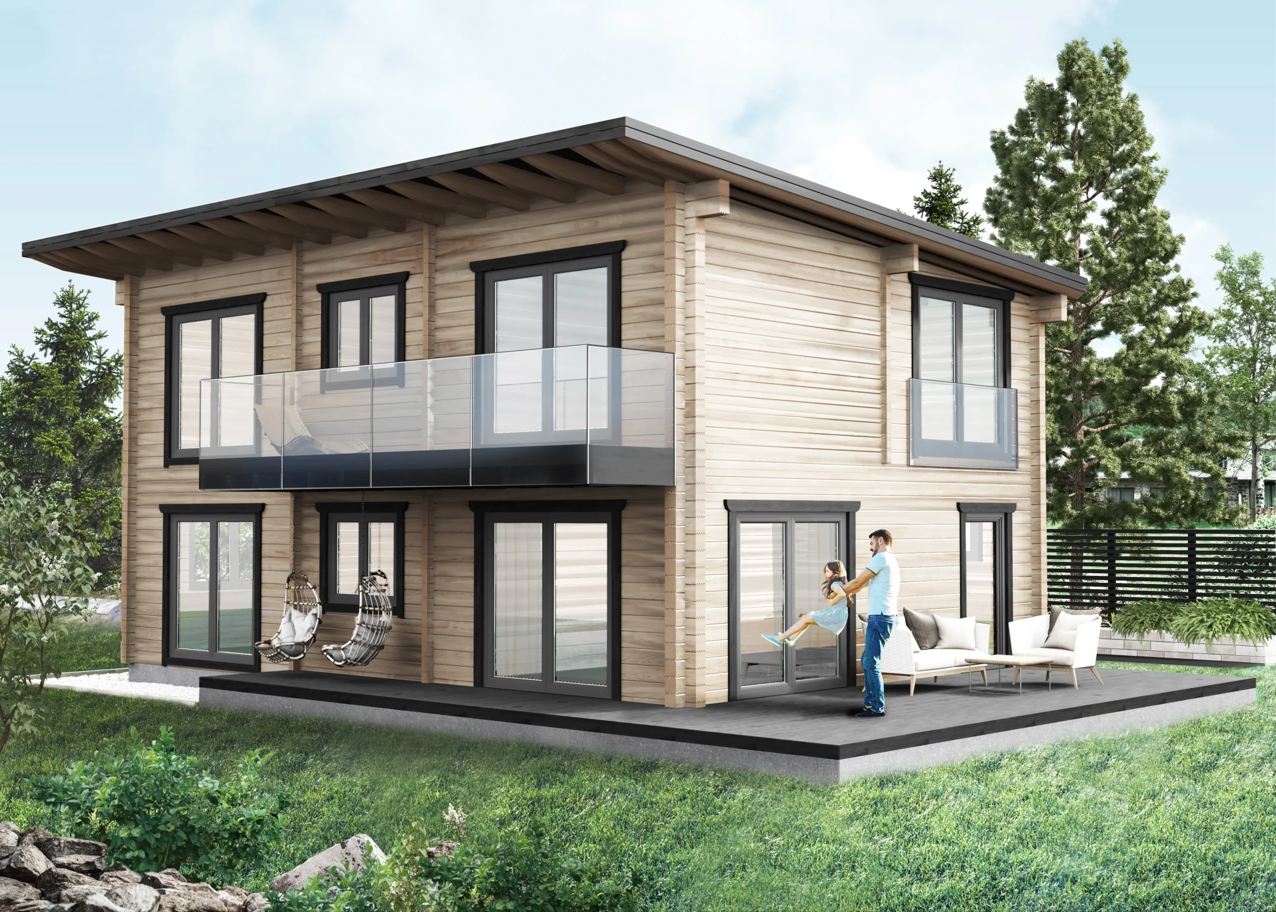 The LUKAS is a premium timber blockhouse that combines modern architecture with exceptional functionality. Its flat-roof design and full-length windows create a sleek, contemporary look that fits seamlessly into both urban and natural environments. With 140 m² of living space, the layout includes a spacious open-plan living area, three bedrooms, an office or guest room, two bathrooms, and a dedicated laundry room. Two balconies and a backyard terrace extend the living experience outdoors. Built with double-walled insulated timber, LUKAS offers year-round comfort and energy efficiency-ideal for discerning homeowners seeking a refined, future-ready residence.