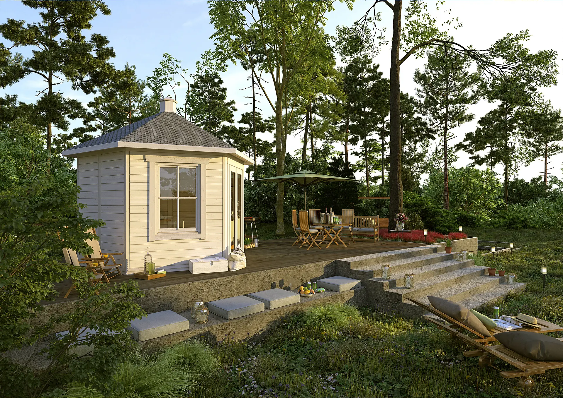 The MIDA pavilion is a versatile timber structure designed for outdoor leisure, dining, or social gatherings. Its six sided layout provide a spacious, airy environment that suits gardens, parks, or hospitality venues. Available in multiple sizes and configurations, MIDA can be customized with optional side panels, integrated benches, or decorative elements. Built from durable wood and engineered for long-term use, it offers both charm and functionality for year-round enjoyment.