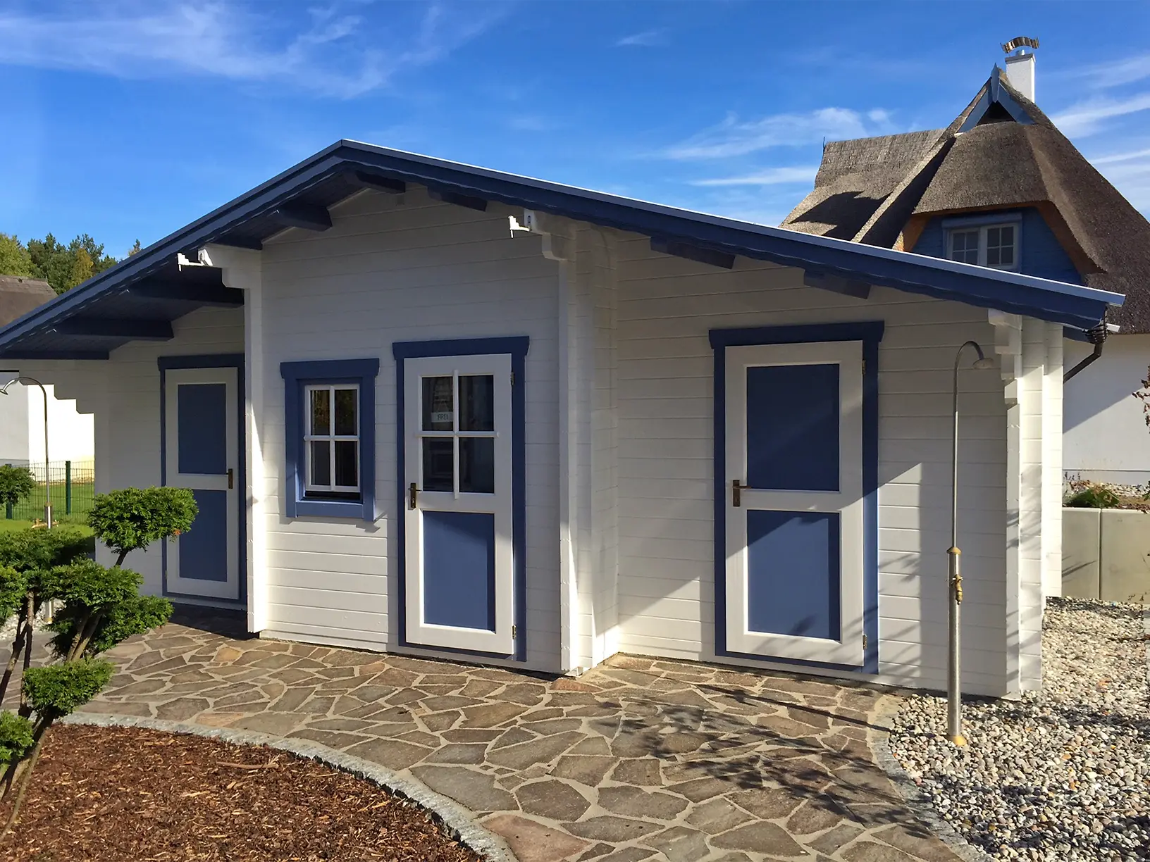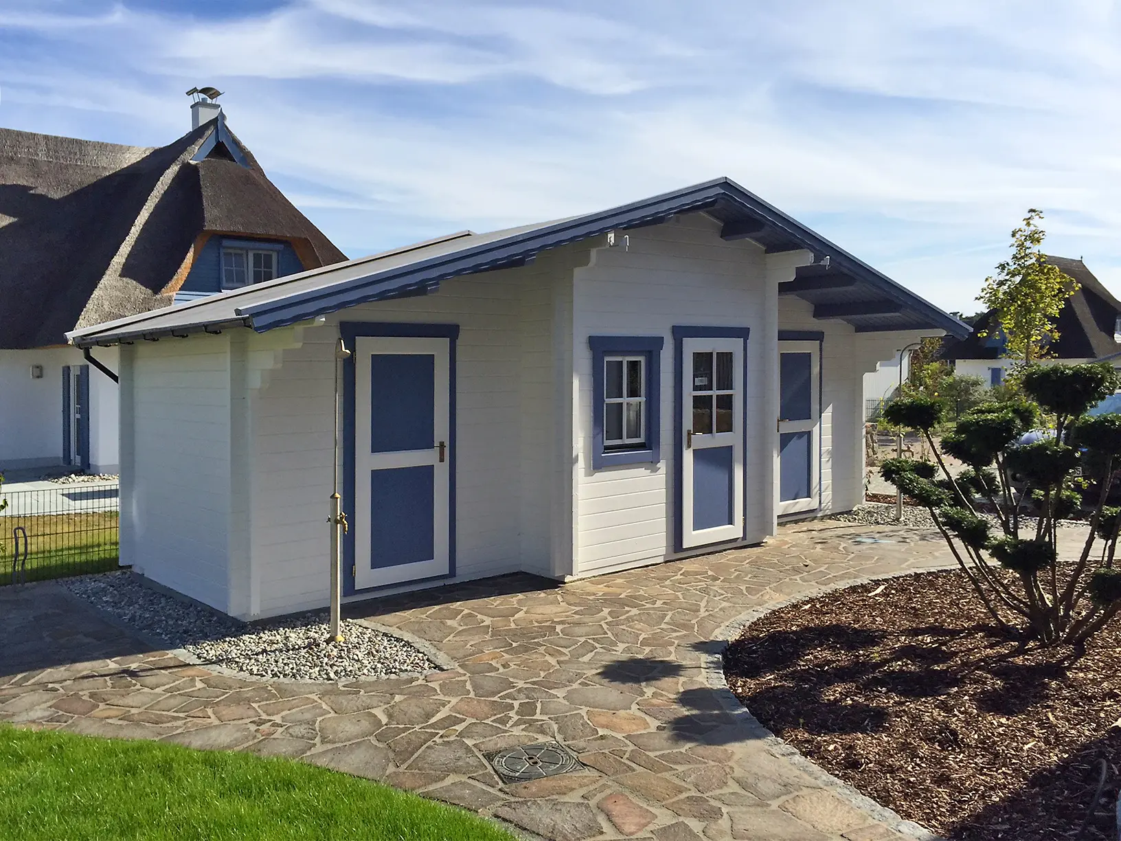 The NIDA-A expands on the base model with an additional annex, offering increased flexibility for storage or multi-room configurations. Its flat roof and modular design allow seamless integration into modern landscapes. Ideal for use as a garden workshop, seasonal retail kiosk, or dual-purpose utility space in residential or commercial settings.