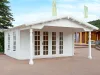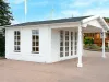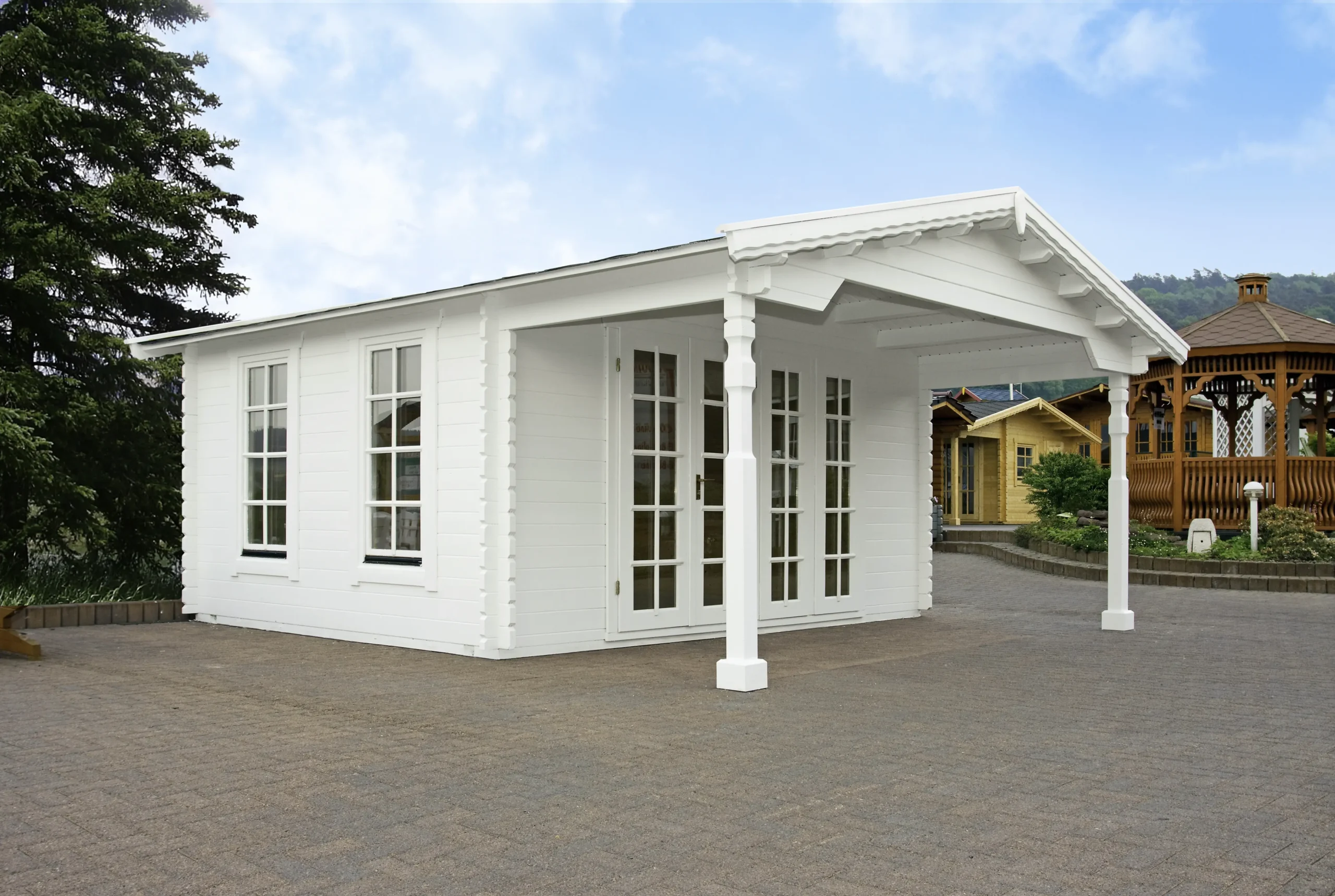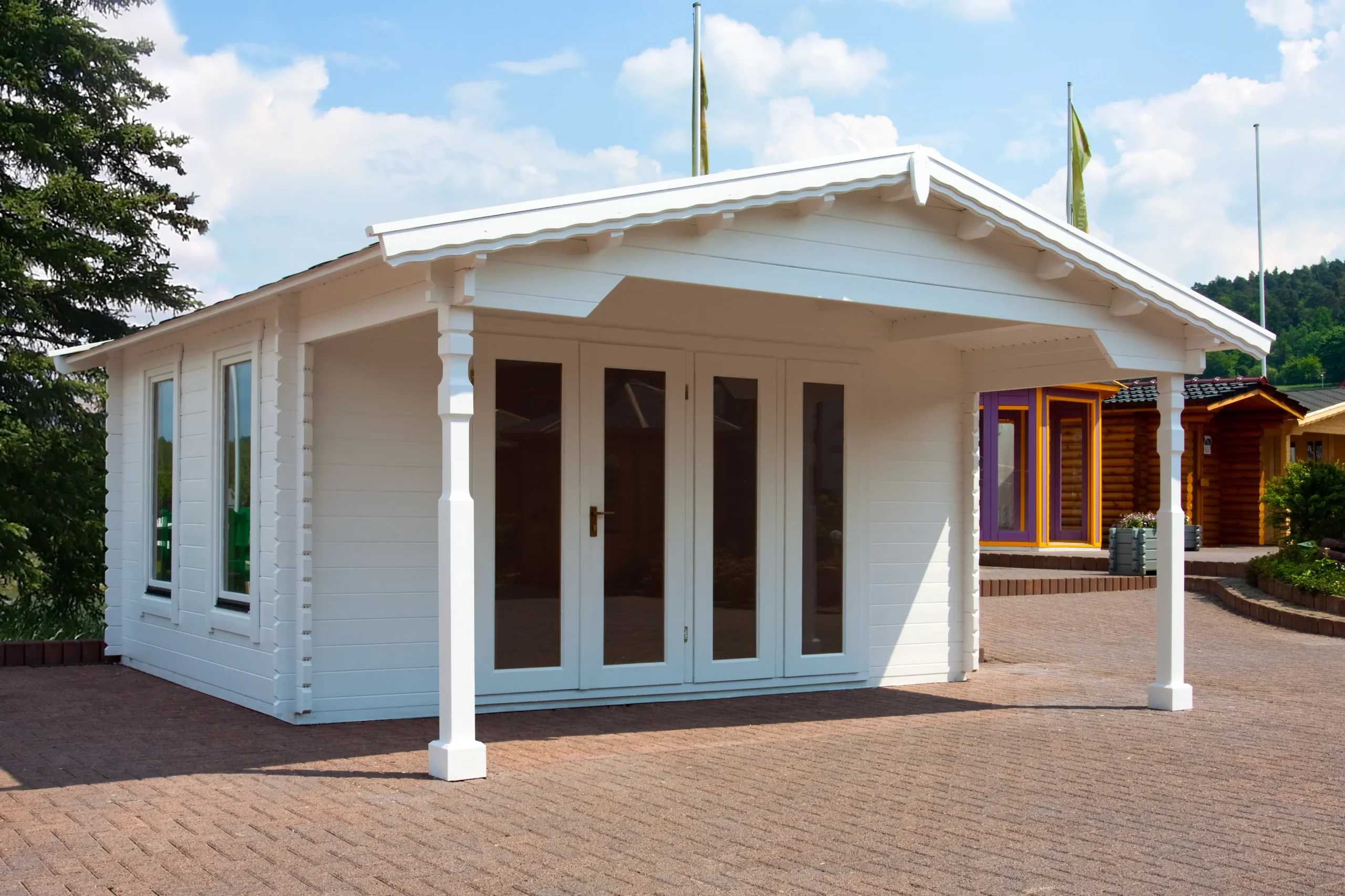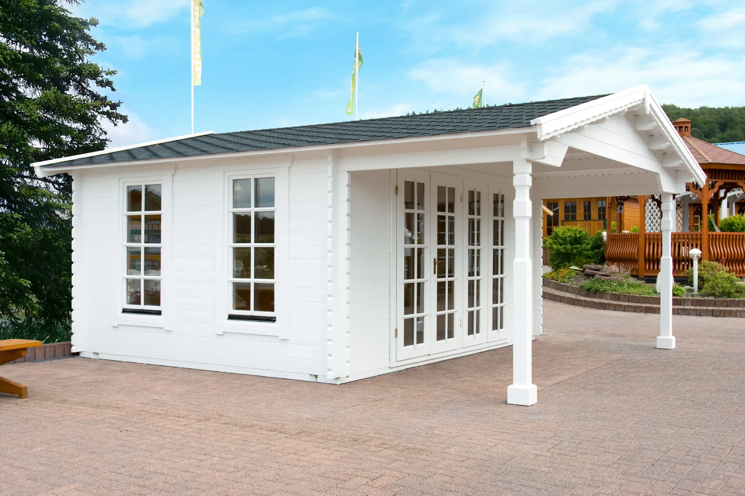 The NIDA-V enhances the clean lines of the flat-roof design with a functional front canopy, offering additional sheltered space for seating or equipment. Its modern aesthetic and open interior layout make it suitable for hospitality venues, wellness retreats, or as a stylish garden office. With durable timber construction and thoughtful detailing, this model delivers both visual appeal and everyday utility.