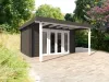 The NIDA-VFD is a sleek, flat-roofed garden house designed for modern outdoor environments. Its minimalist silhouette and expansive glass surfaces make it ideal for urban gardens, rooftop terraces, or resort settings. The open-plan interior offers flexibility for use as a lounge, office, or seasonal guest room. Built with precision-cut timber, NIDA-VFD combines architectural elegance with practical versatility.