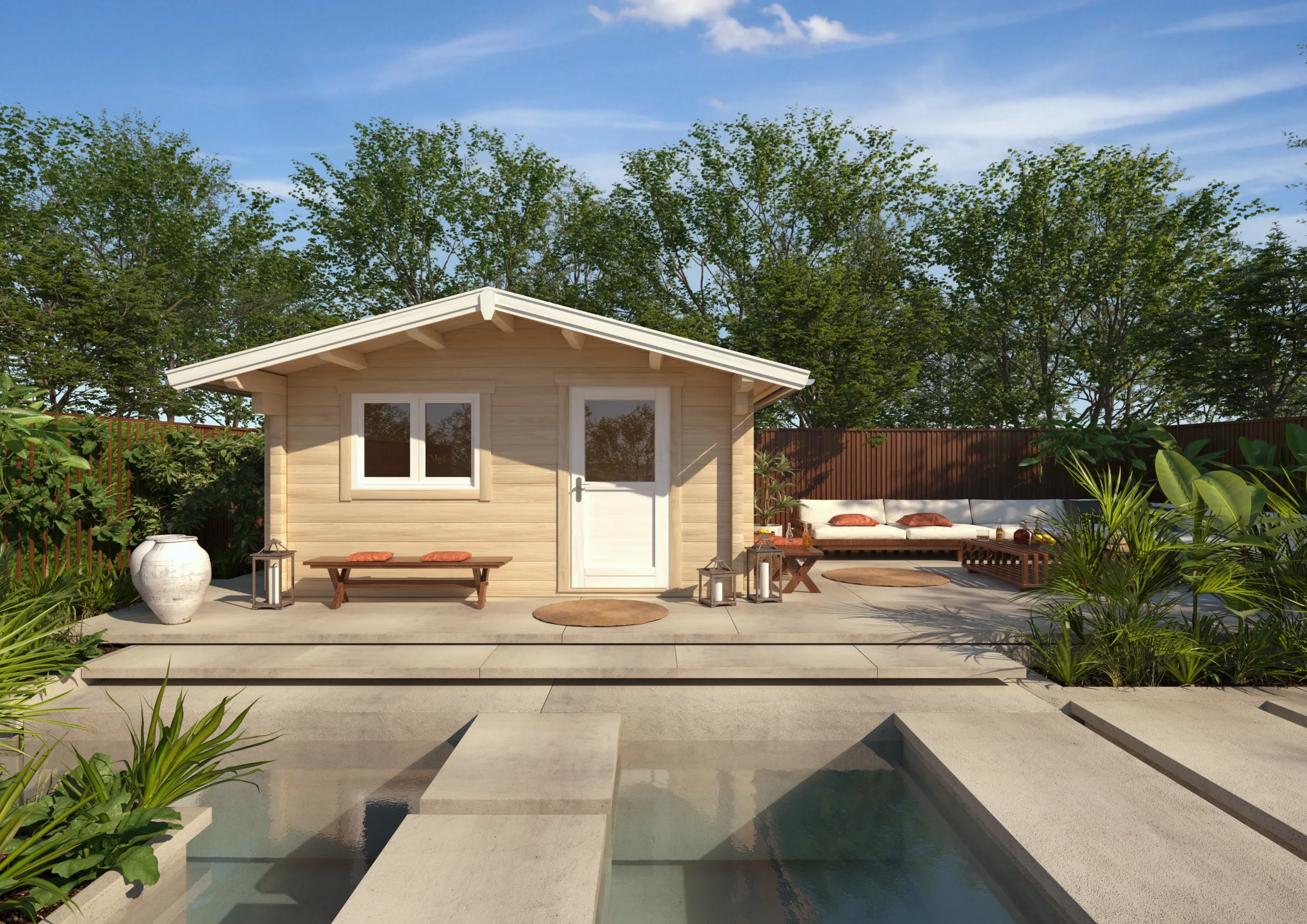 The NIDA garden house is a compact and adaptable timber building designed for a wide range of outdoor applications. Its clean design and efficient footprint make it ideal for use as a tool shed, hobby room, or seasonal workspace. Built from precision-cut timber with interlocking planks, NIDA offers durability and flexibility-perfect for residential gardens, public parks, or commercial landscaping projects.
