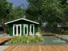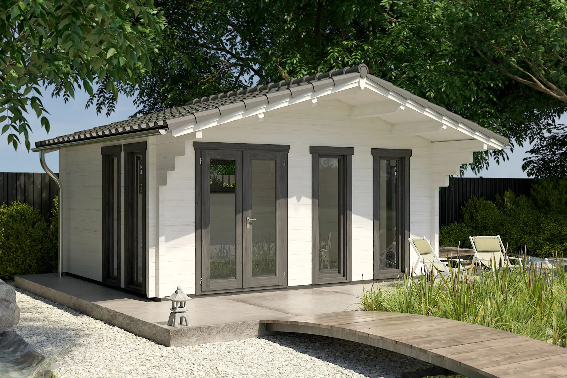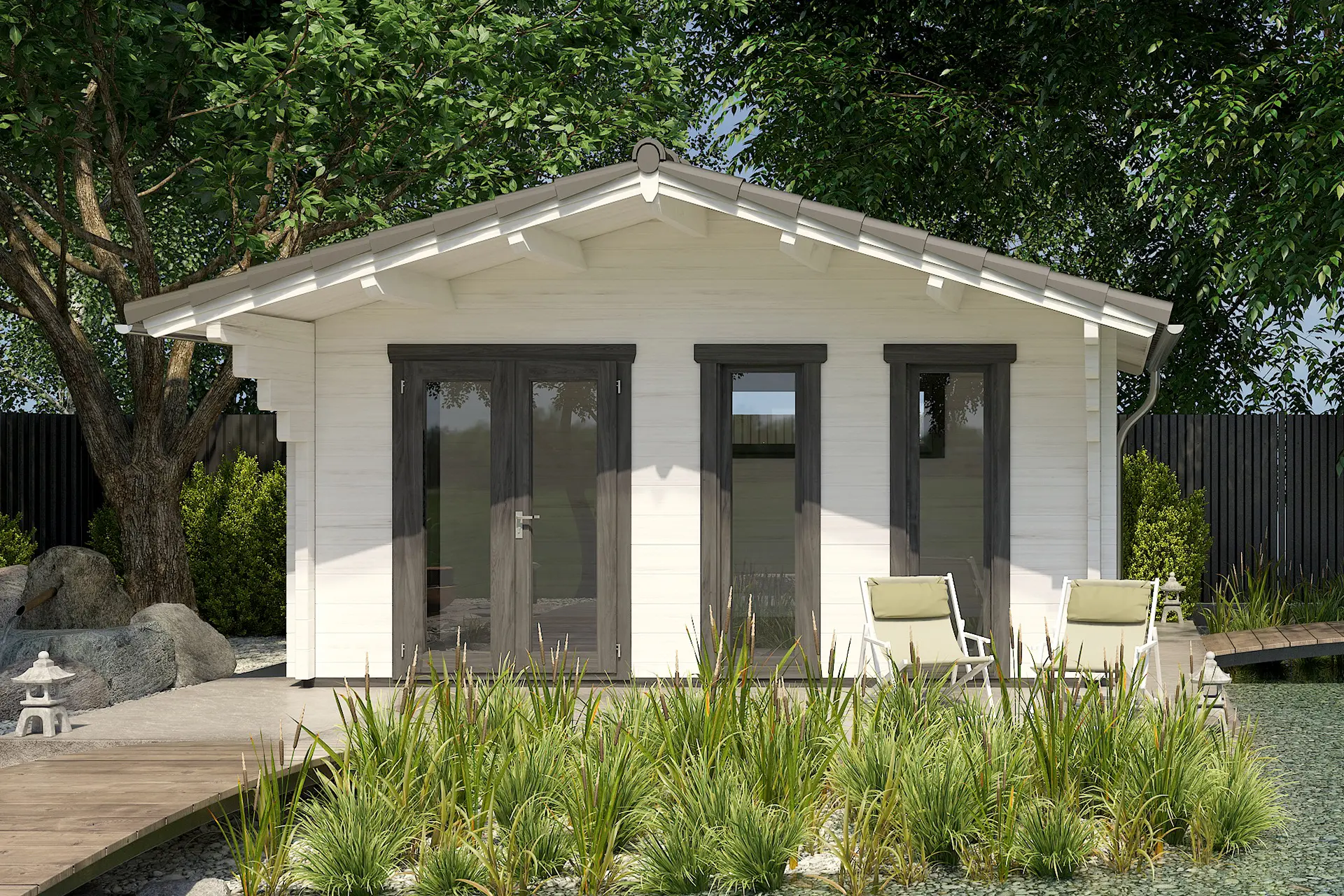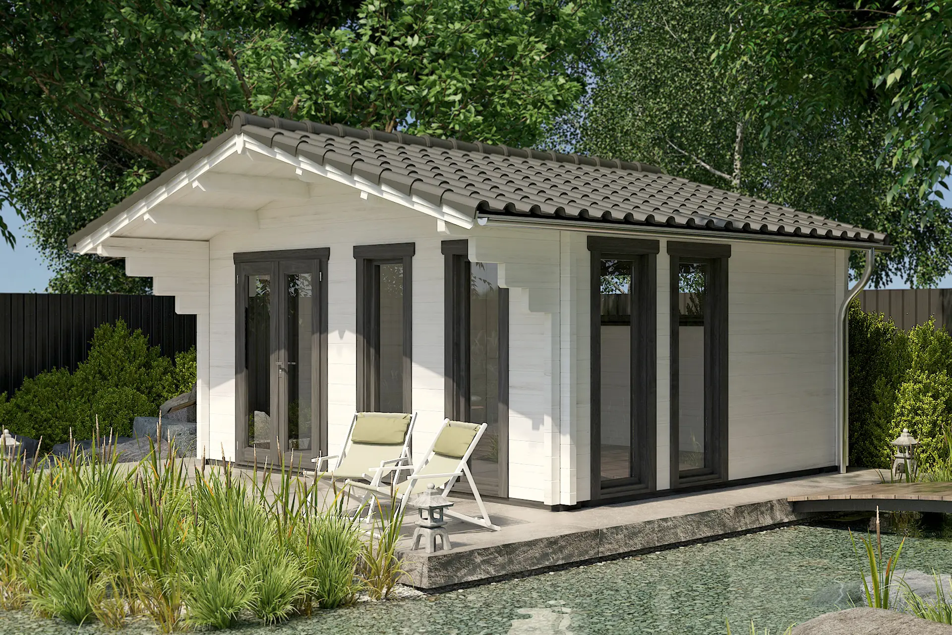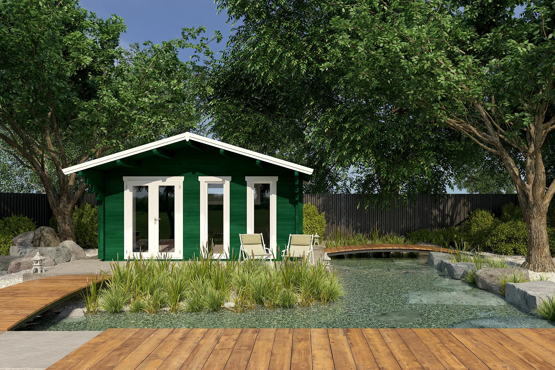 The NILA garden house is a charming and versatile timber cabin with a classic gabled roof and a welcoming front canopy. Available in multiple sizes, it adapts easily to various uses-from a cozy garden lounge or boutique café to a stylish retail space. Tall windows enhance the interior with natural light and offer open views of the surroundings, making NILA a perfect fit for residential gardens, commercial plots, or hospitality venues.