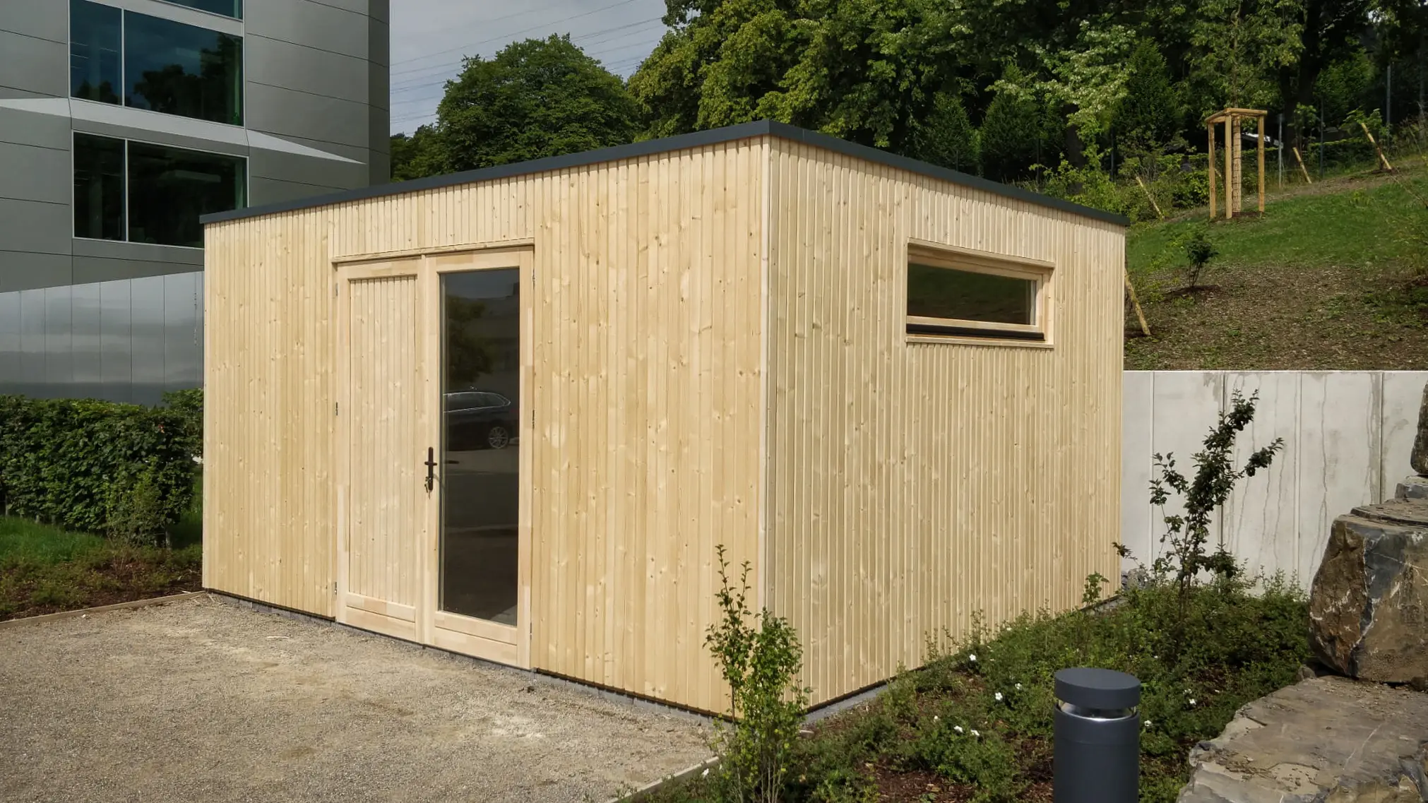 The SUNNY garden house is a modular, modern structure available in a range of sizes to suit various outdoor layouts. Its clean, boxy design is ideal for narrow or vertically oriented spaces, making it a smart choice for urban gardens or compact commercial plots. Whether used as a garden dining room, outdoor reception area, or poolside equipment shed, SUNNY offers flexible functionality with a contemporary edge.