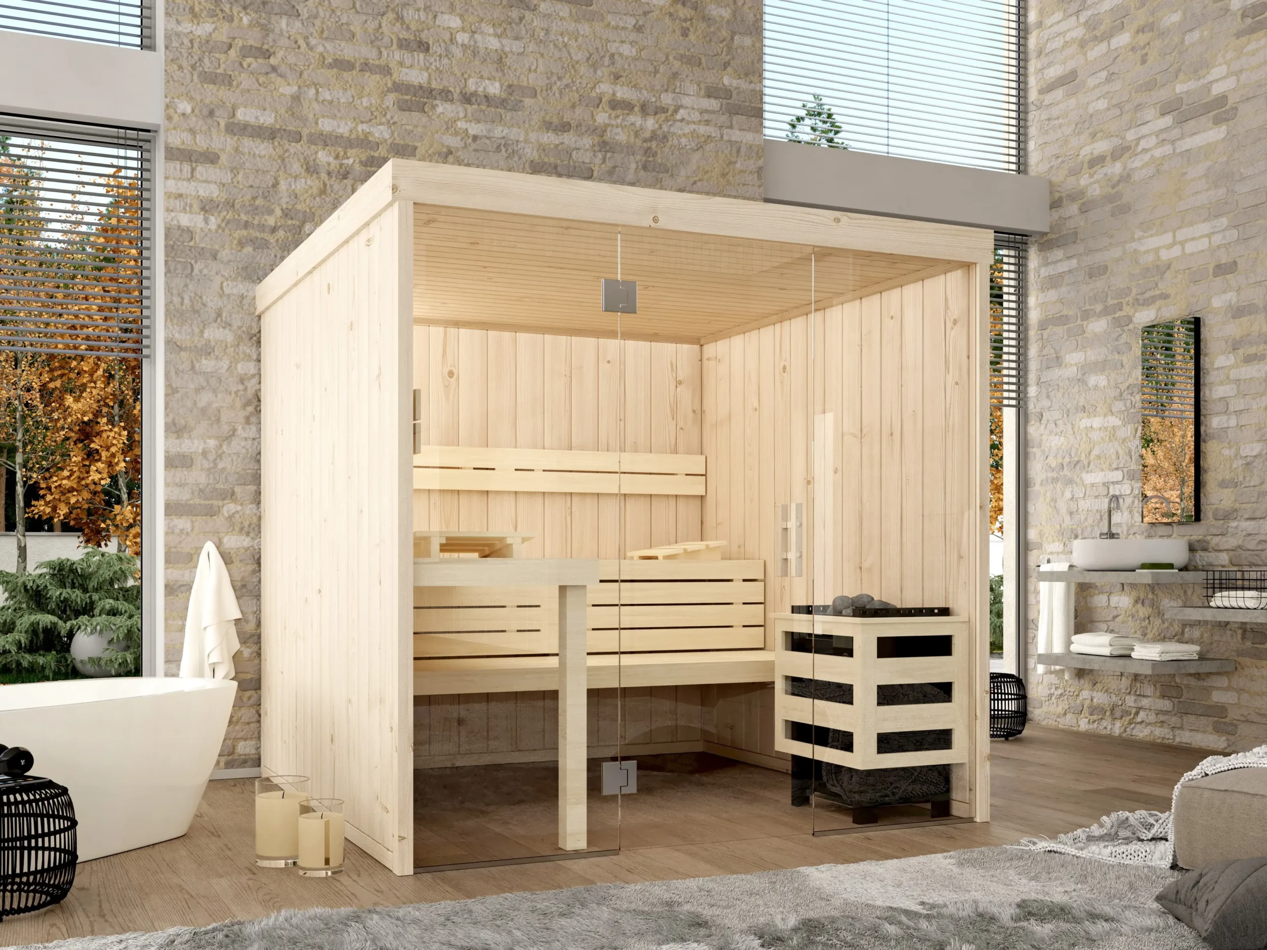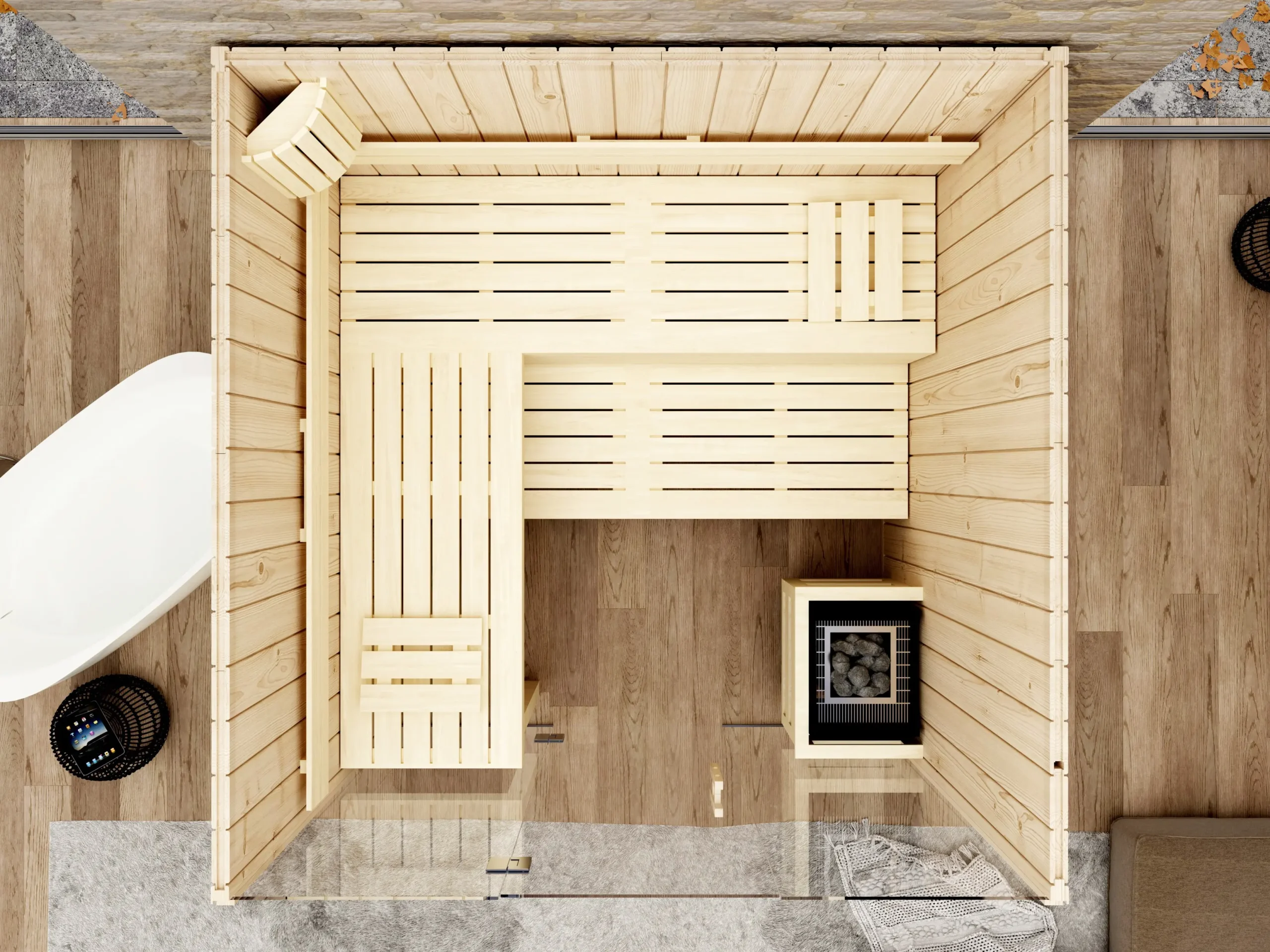 The TYLA offers a classic rectangular layout with a focus on simplicity and comfort. Its natural wood construction supports a balanced sauna climate, while the interior is designed for ease of use and relaxation. Whether for a home spa or a compact wellness room, this model delivers reliable performance with understated elegance.