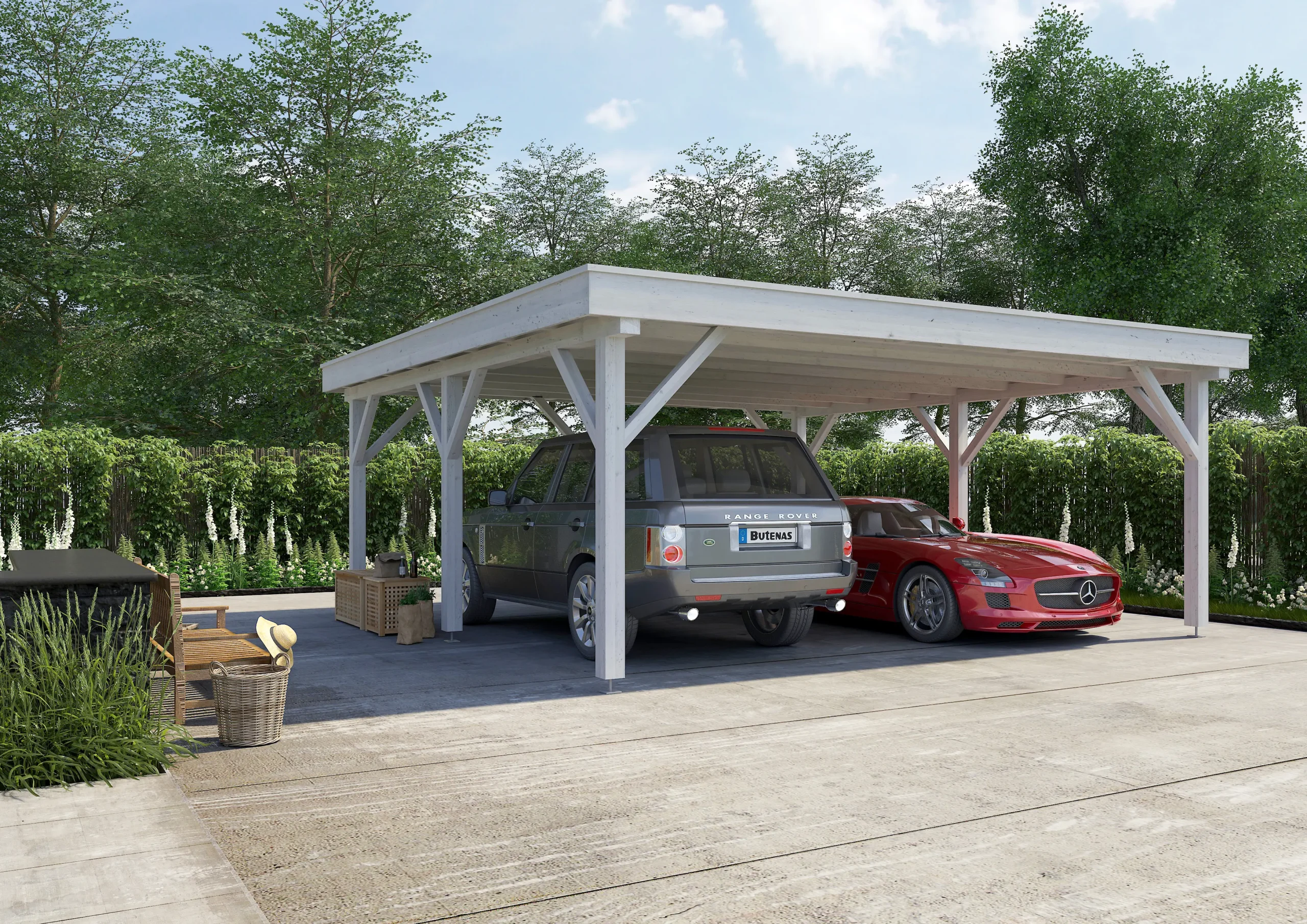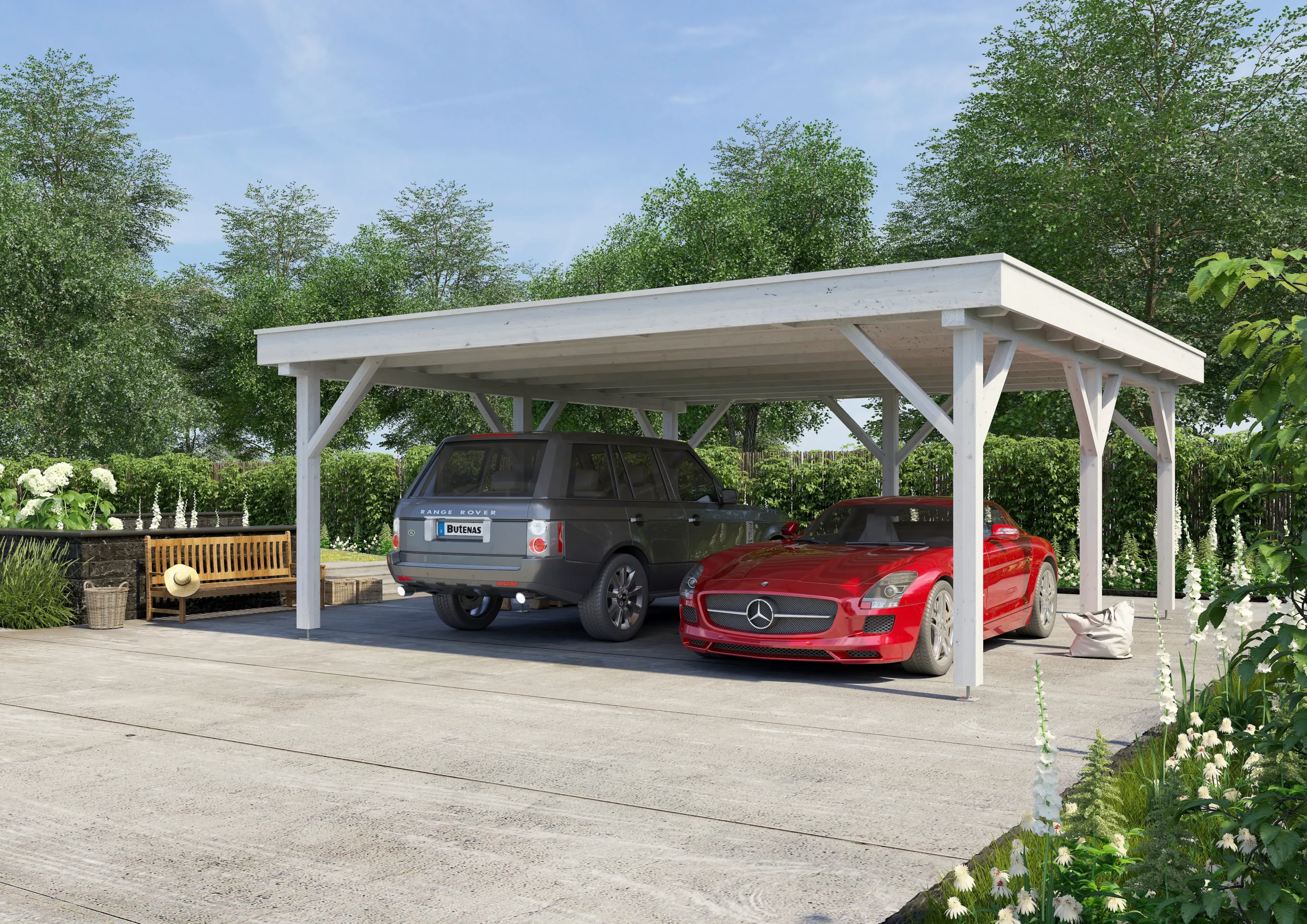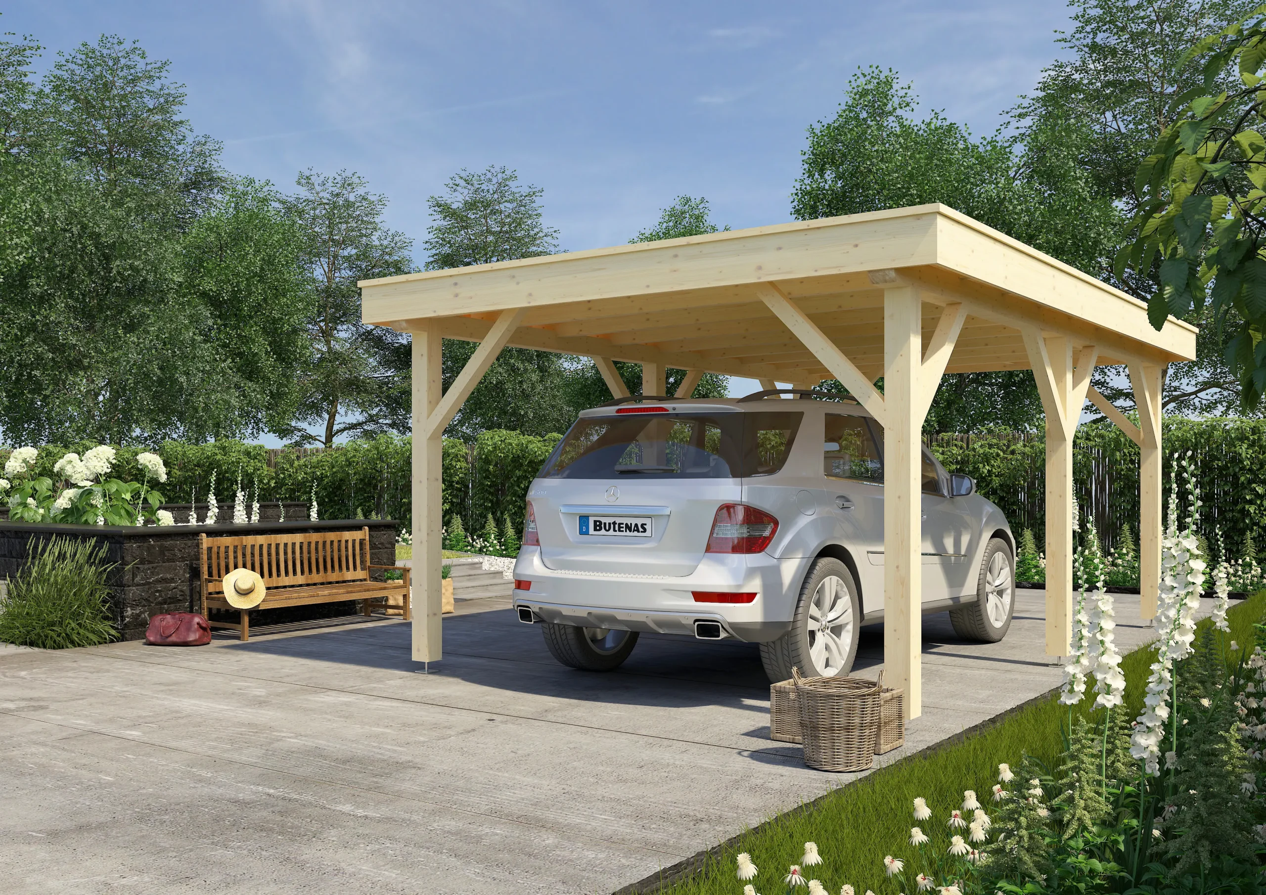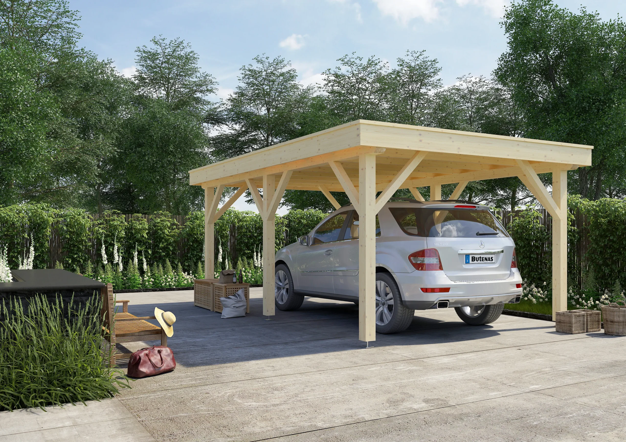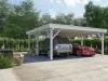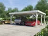 he UMBRA-F is a flat-roofed timber carport offering a modern, space-efficient solution for vehicle shelter. Built from robust wood and engineered for stability, it provides dependable protection from rain, snow, and sun. Its minimalist design suits contemporary homes or commercial properties, while optional add-ons like side walls or storage units enhance functionality. A smart choice for clients seeking a low-profile, high-performance carport.