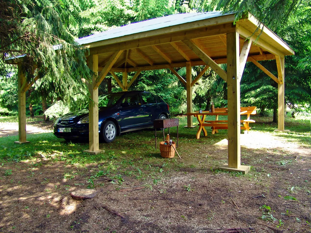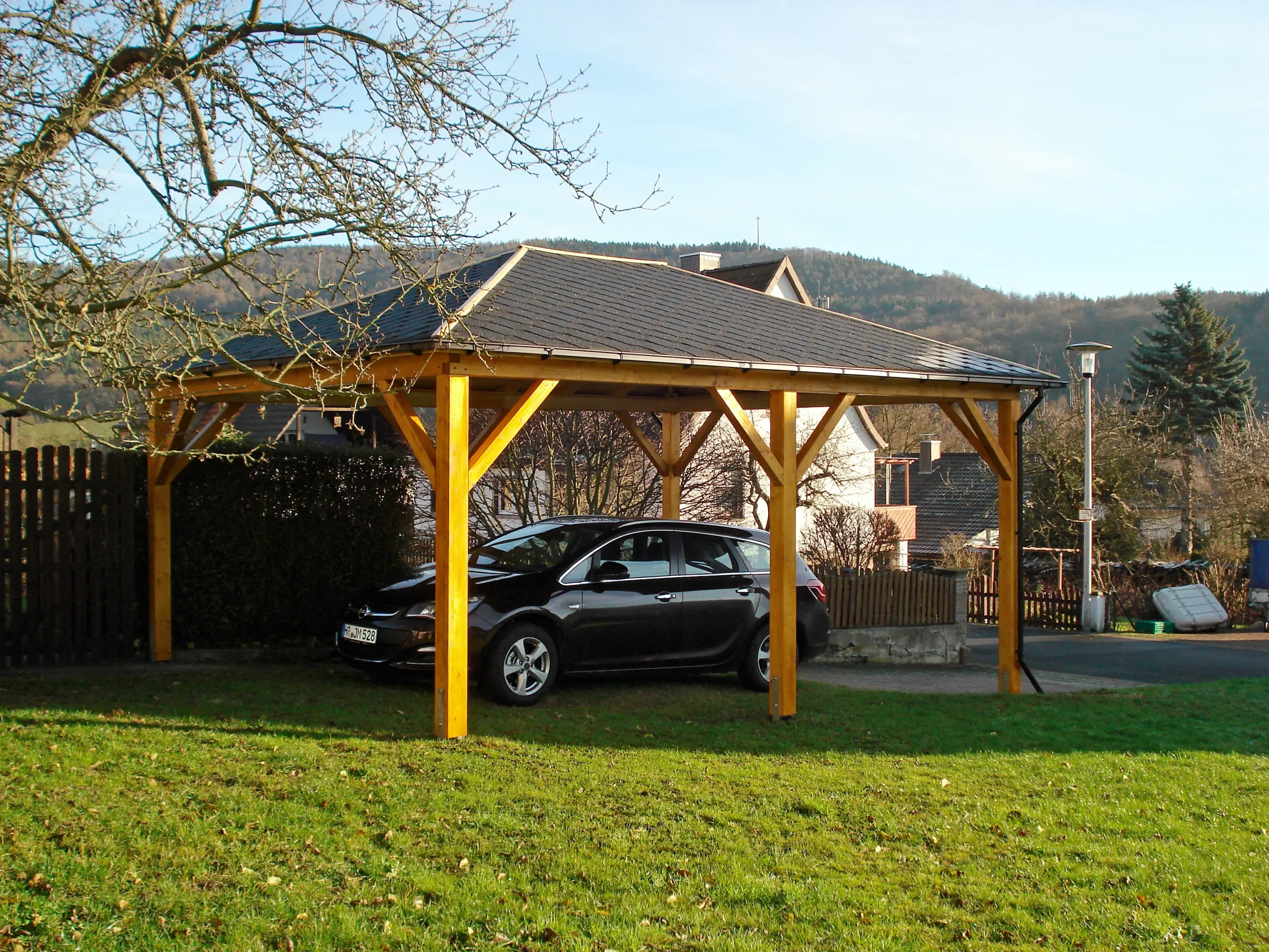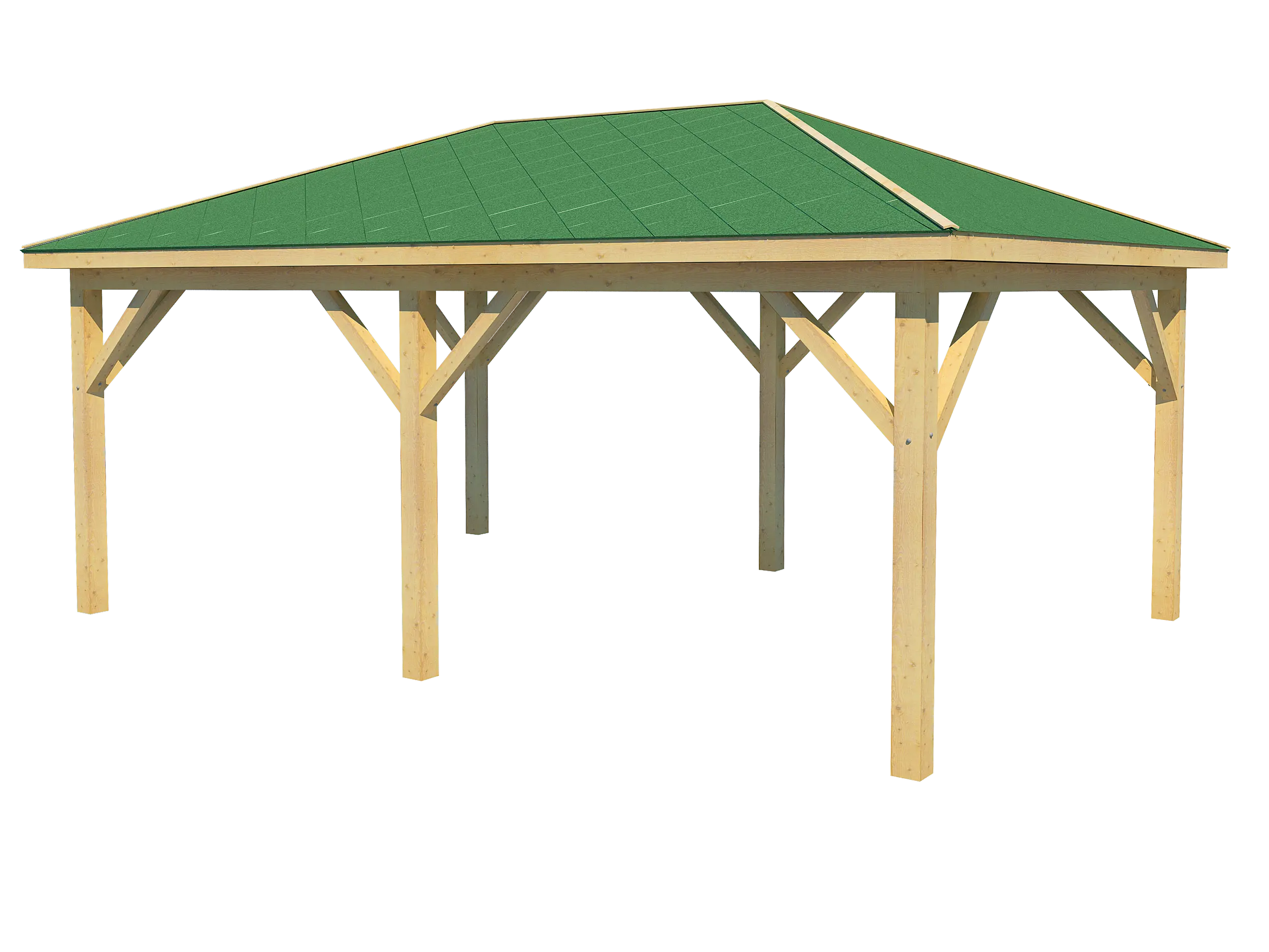 The UMBRA carport is a durable timber structure designed to provide reliable year-round protection for vehicles. Its hip roof ensures effective water drainage, while the solid wood frame offers long-term stability and weather resistance. Ideal for residential driveways or commercial parking areas, UMBRA combines practical coverage with a clean, traditional look. Optional side panels and extensions allow for customized configurations to suit various site requirements.