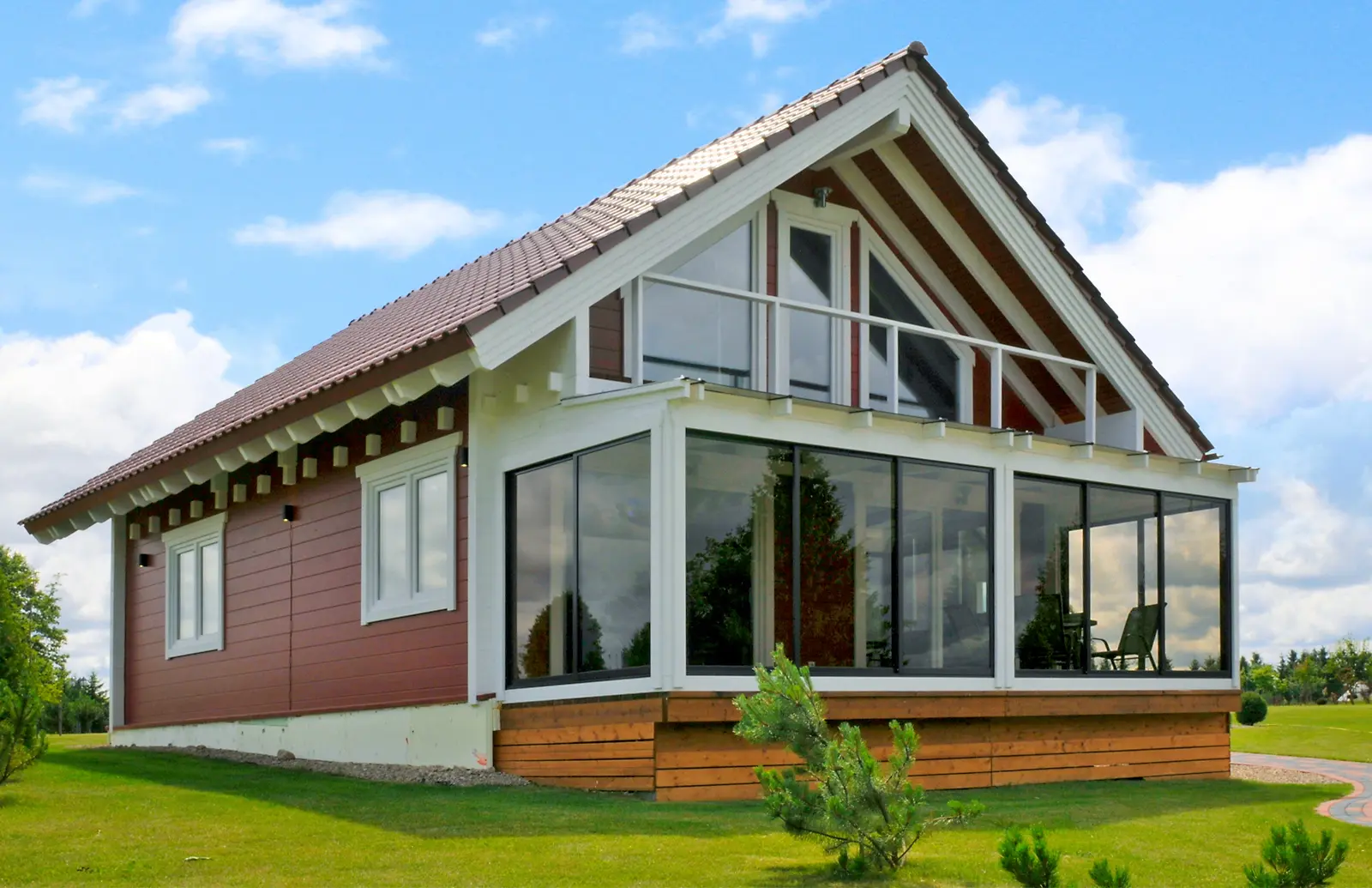 The UTENA 65 is a spacious timber summer house designed for residential-level comfort. Its open-plan ground floor includes a large living area, kitchen zone, and enclosed terrace option, while the second floor accommodates up to three bedrooms and a second bathroom. A second story terrace adds outdoor leisure space with elevated views. Built for seasonal or year-round use, UTENA 65 is ideal for private retreats, extended stays, or boutique rental properties seeking a balance of style and functionality.